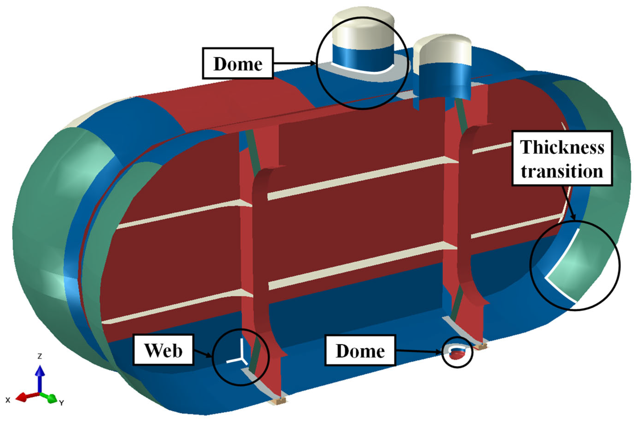 - Characteristics by location: The web and welded intersections of the bilobe shell were consistently identified as critical locations due to geometric and weld-induced stress concentrations.