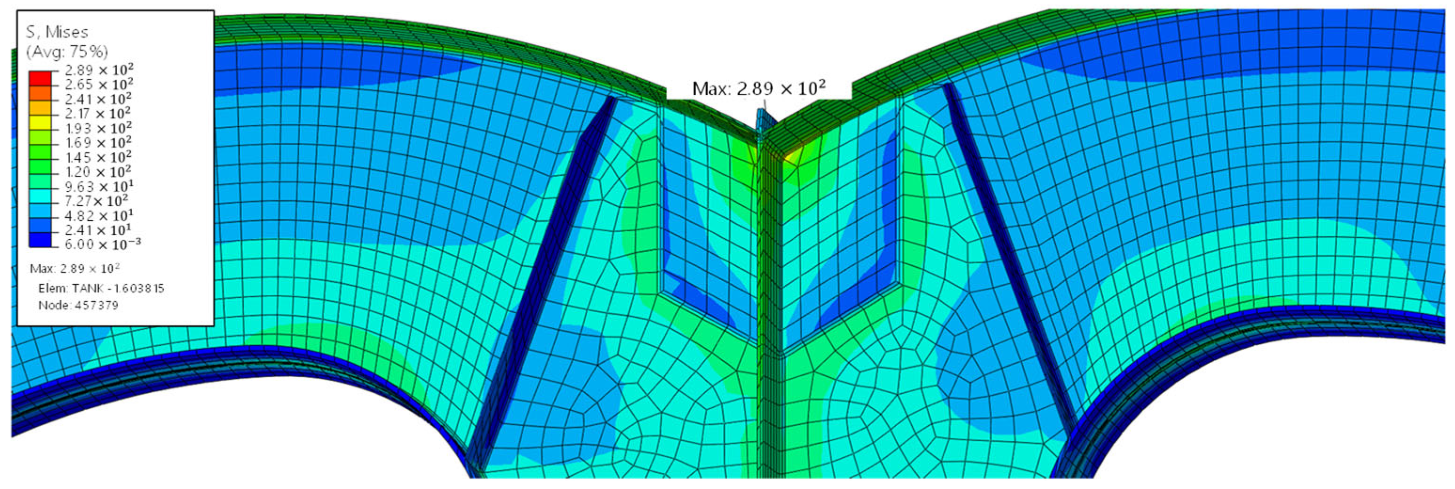 - Seo, J.H.; Park, K.S.; Cha, I.; Choung, J. Engineering Critical Assessement for an Independent Type-B LNG Cargo Tank. J. Soc. Nav. Archit. Korea 2023, 60, 213–221. [Google Scholar] [CrossRef]