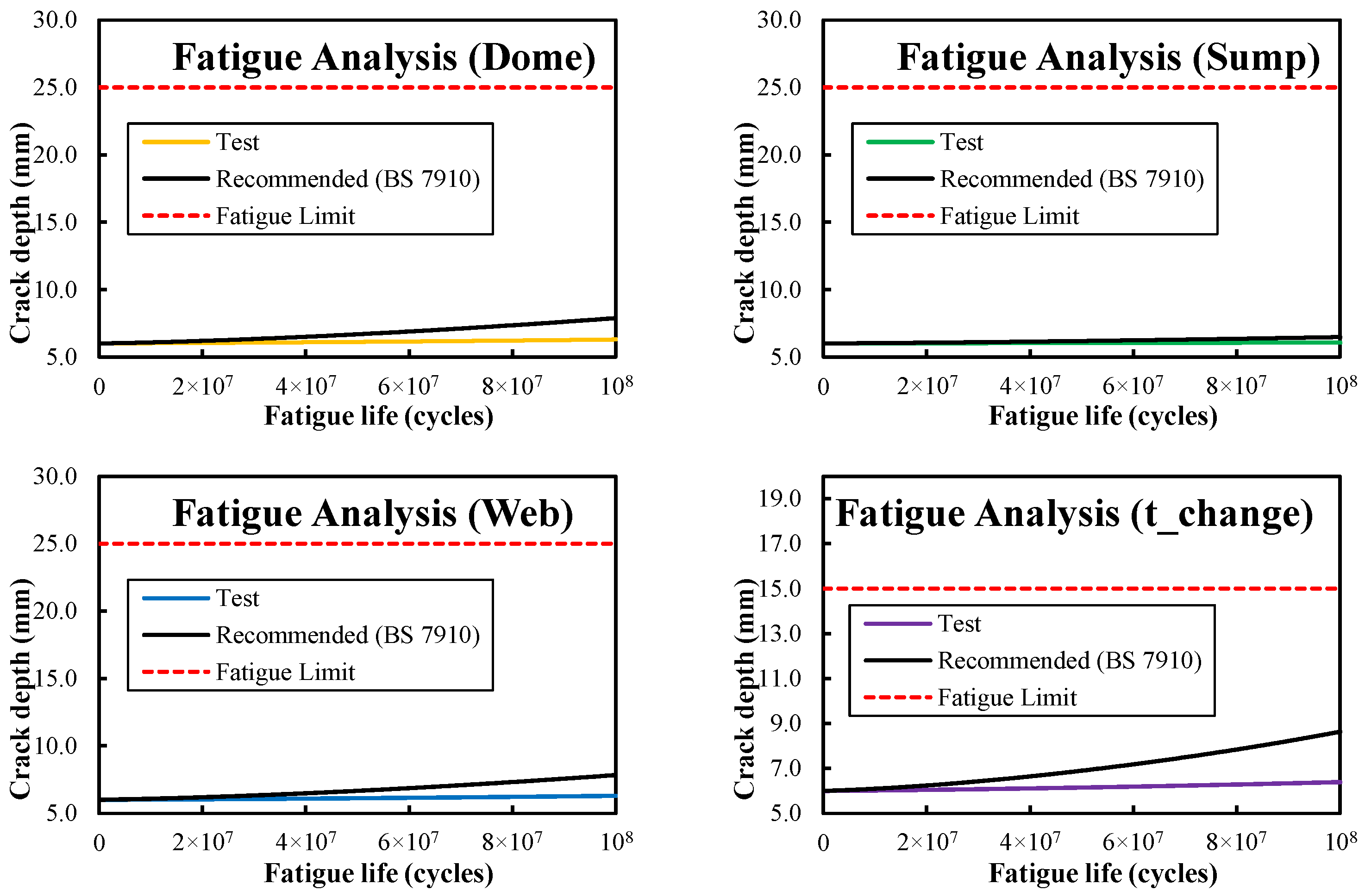 - Fatigue and fracture assessment: While through-thickness crack growth was not predicted, the final crack depth showed sensitivity to FCGR datasets, indicating the importance of accurate crack growth and fracture toughness data for LCO2 tank steels (ex., LTFH36).