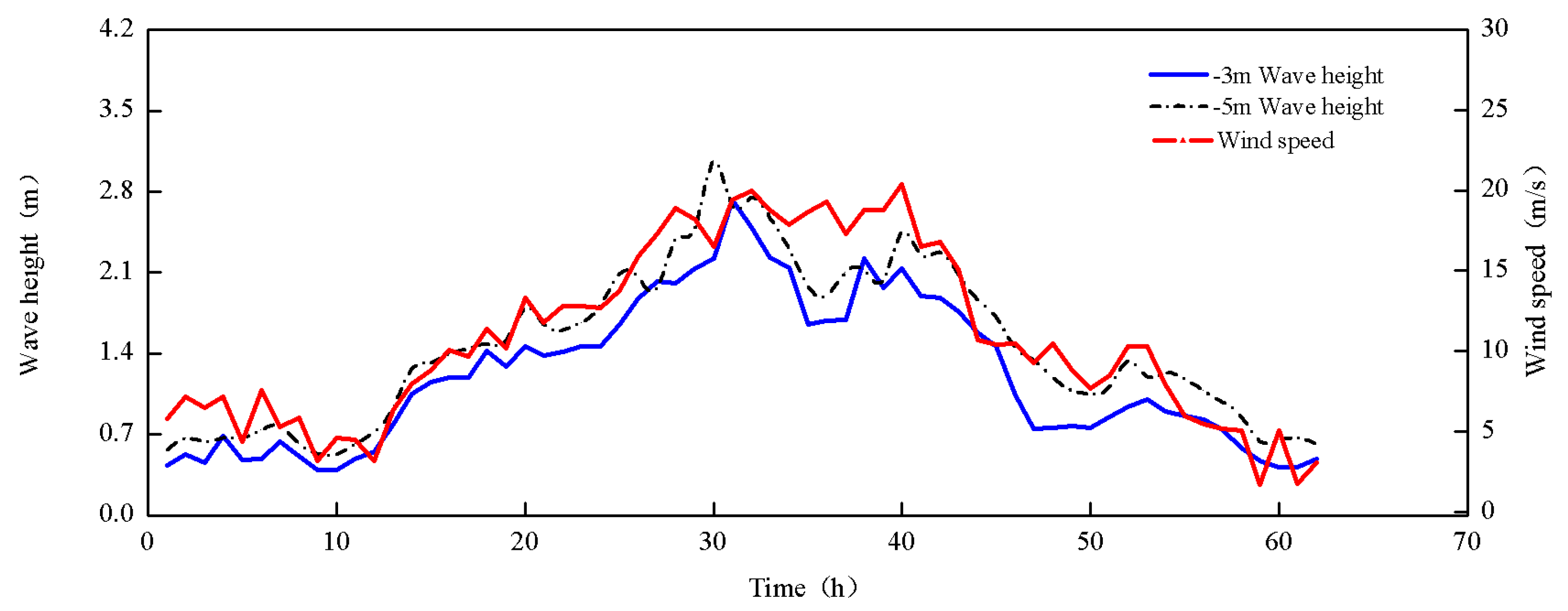 | During the period of big waves (, From 12:00 on the 19th to 15:00 on the 20th) | 0.70 | 0.73 | 0.42 | 0.21 | 2.0 |