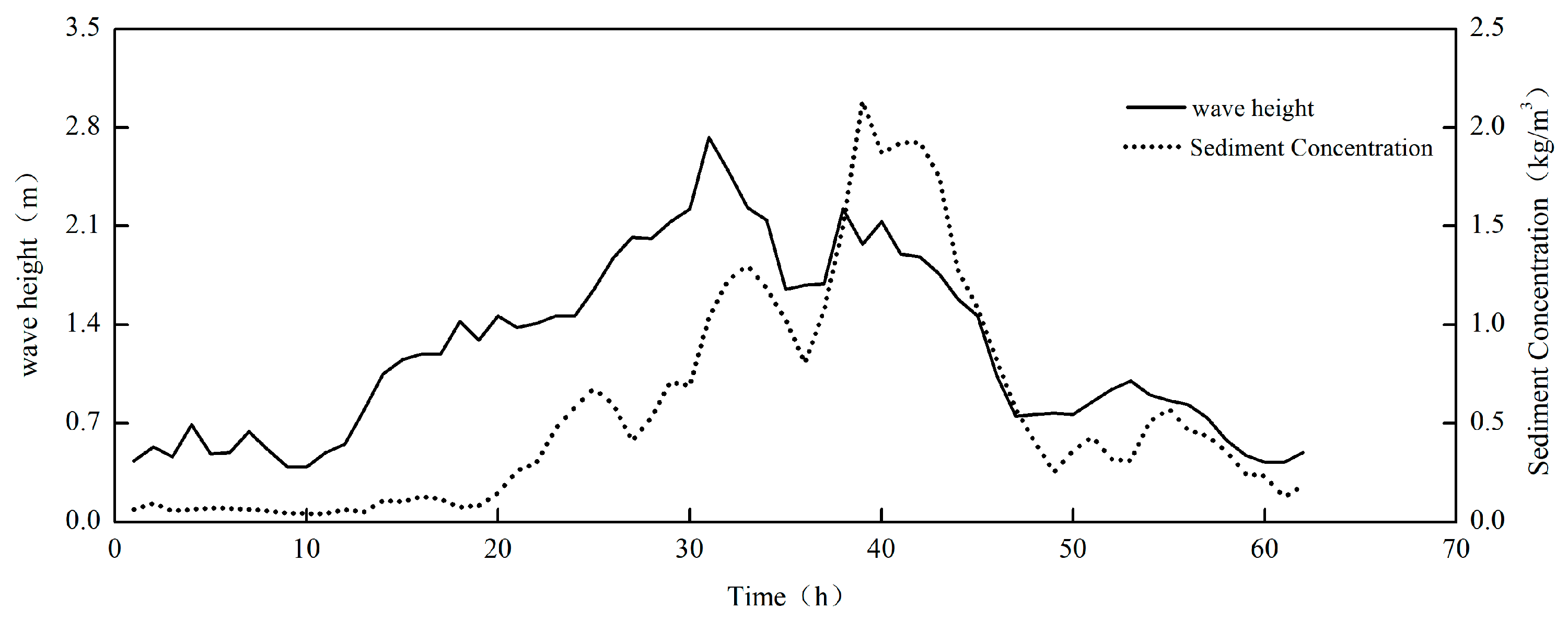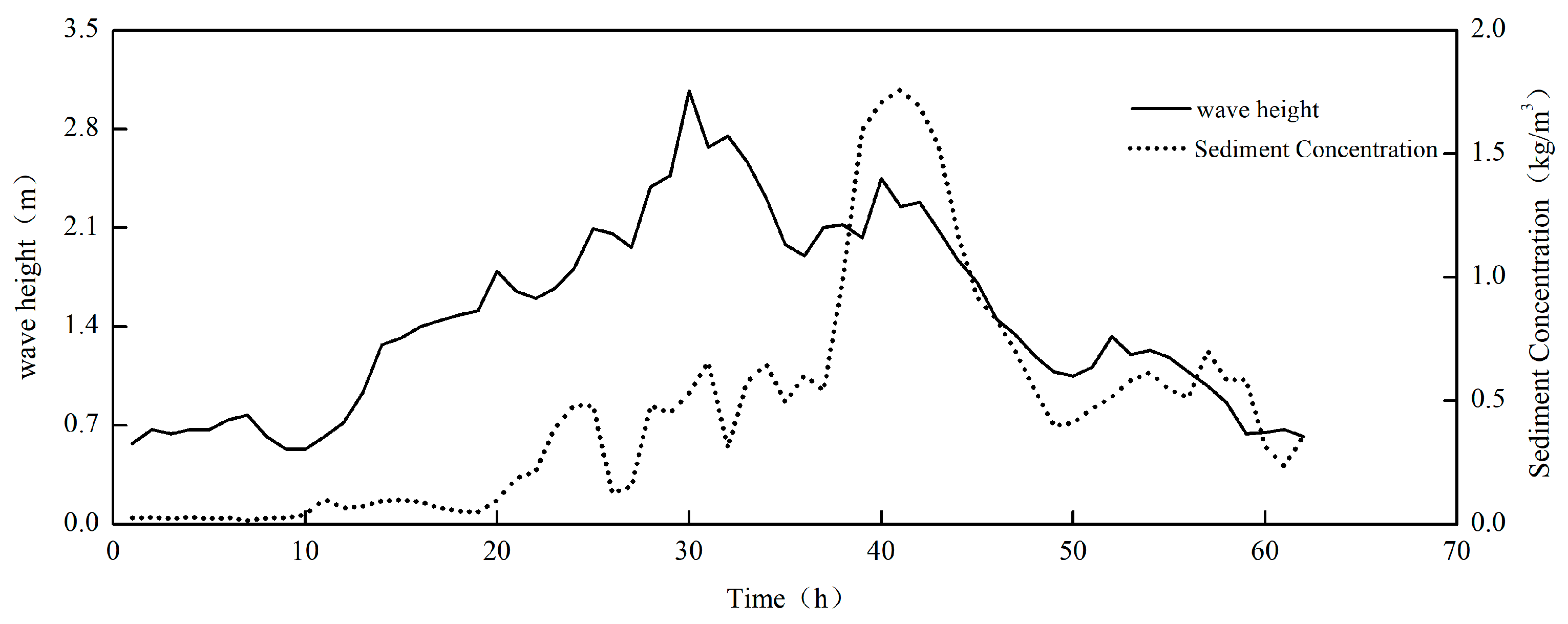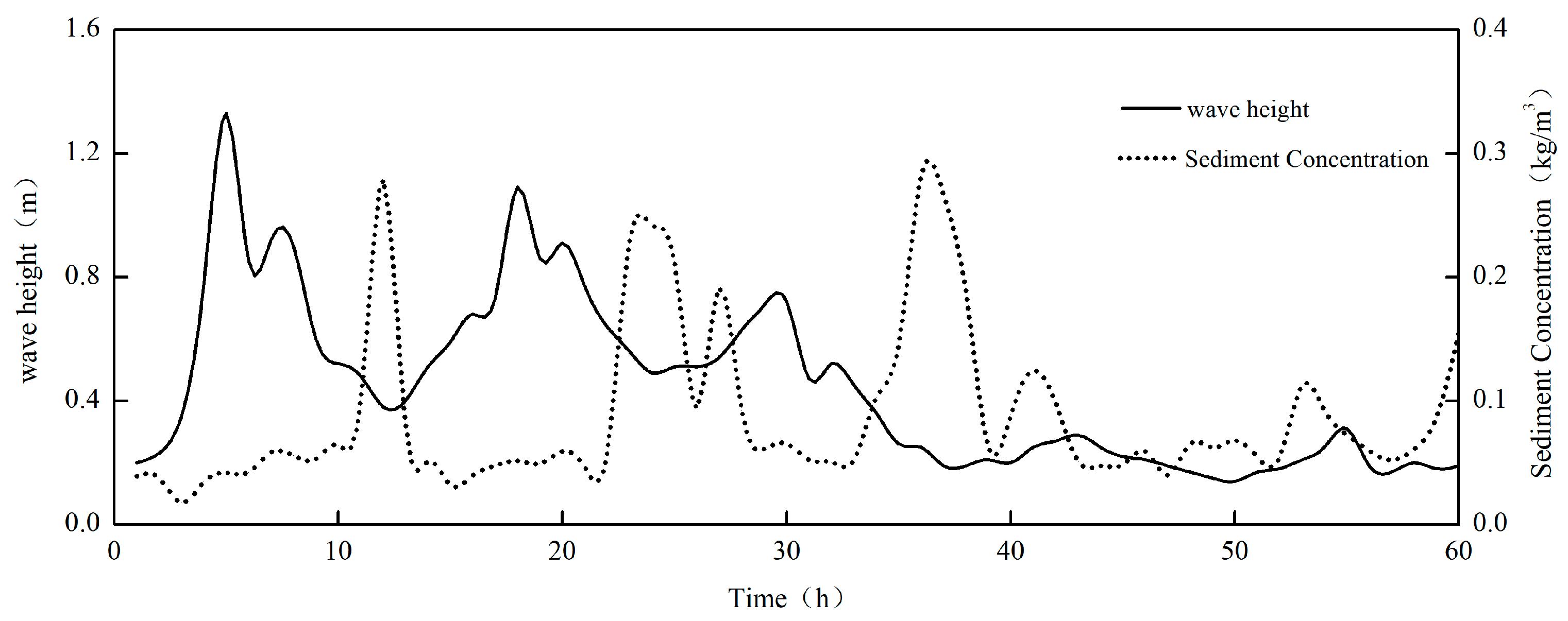 - Correlation between sediment concentration and wave height response