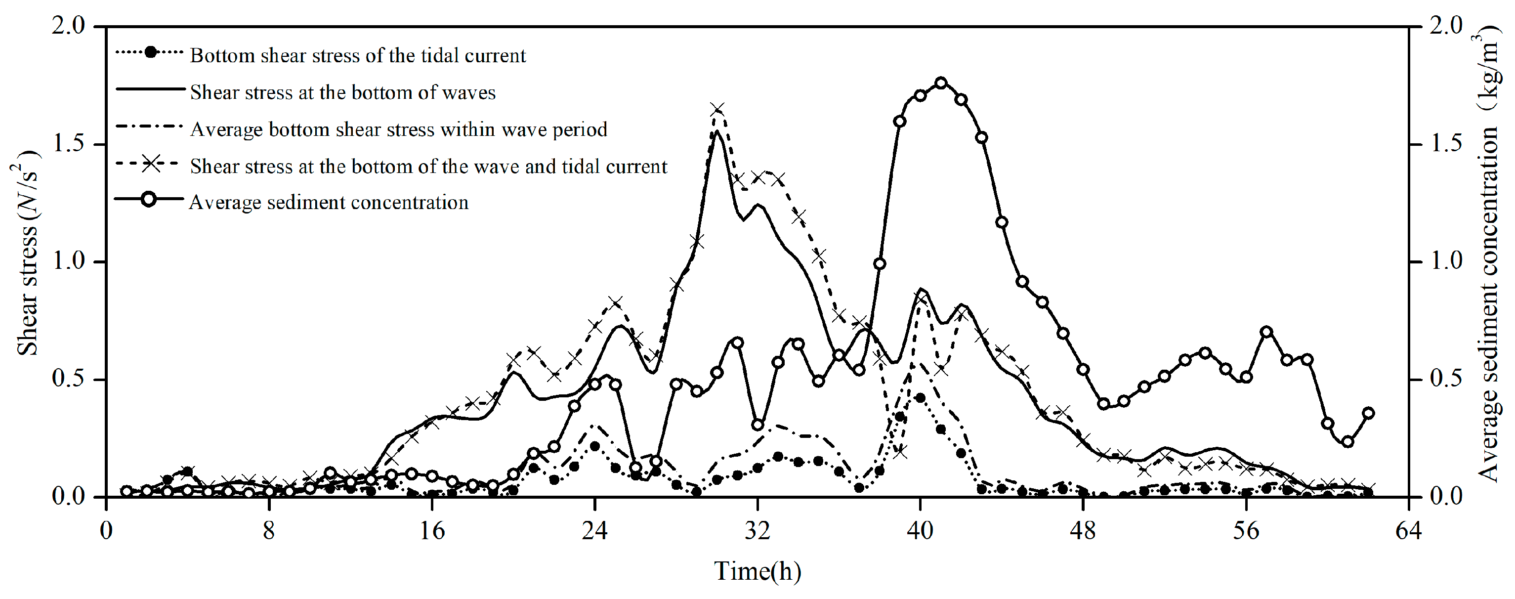 | Time | Mean Value of the Measured Sediment Concentration (kg/m3) | Equation (16) Computes the Mean (kg/m3) | Mean Sediment Concentration Induced by Waves (kg/m3) | Mean Concentration of Tidal Sediment (kg/m3) | The Ratio of Sediment Concentration Induced by Waves and Currents |