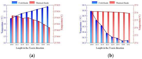The temperature changes of condenser (°C). (a) Lenght in the X-axis direction; (b) Lenght in the Y-axis direction.