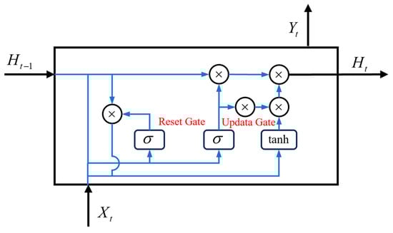 This structural simplification enhances computational efficiency while effectively mitigating vanishing and exploding gradient issues. The GRU architecture is depicted as follows (Figure 5):