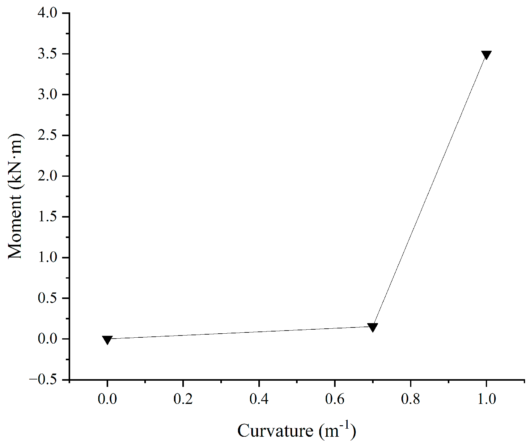 −1, the bend stiffener exhibits low bending stiffness; however, once the curvature exceeds 0.7 m