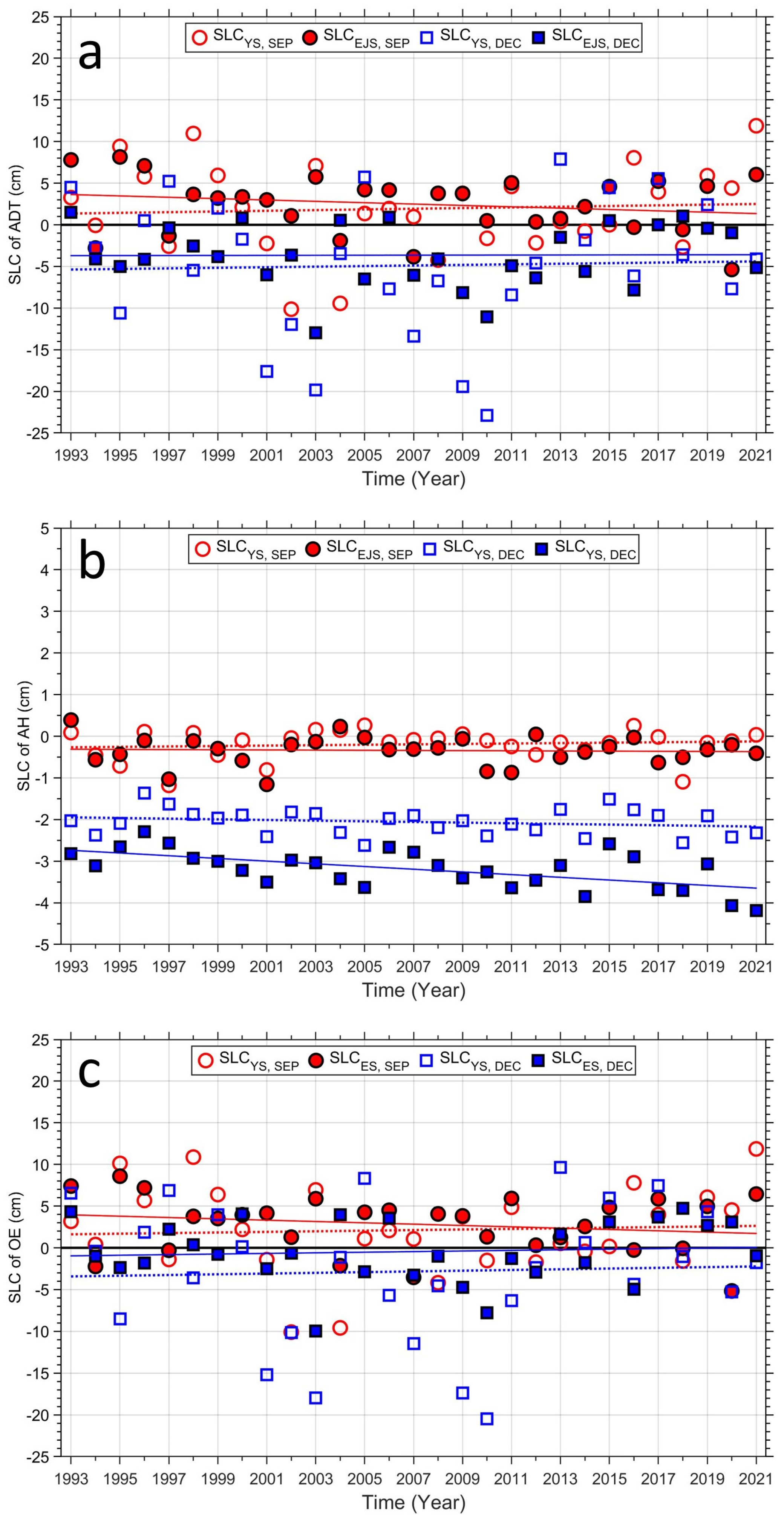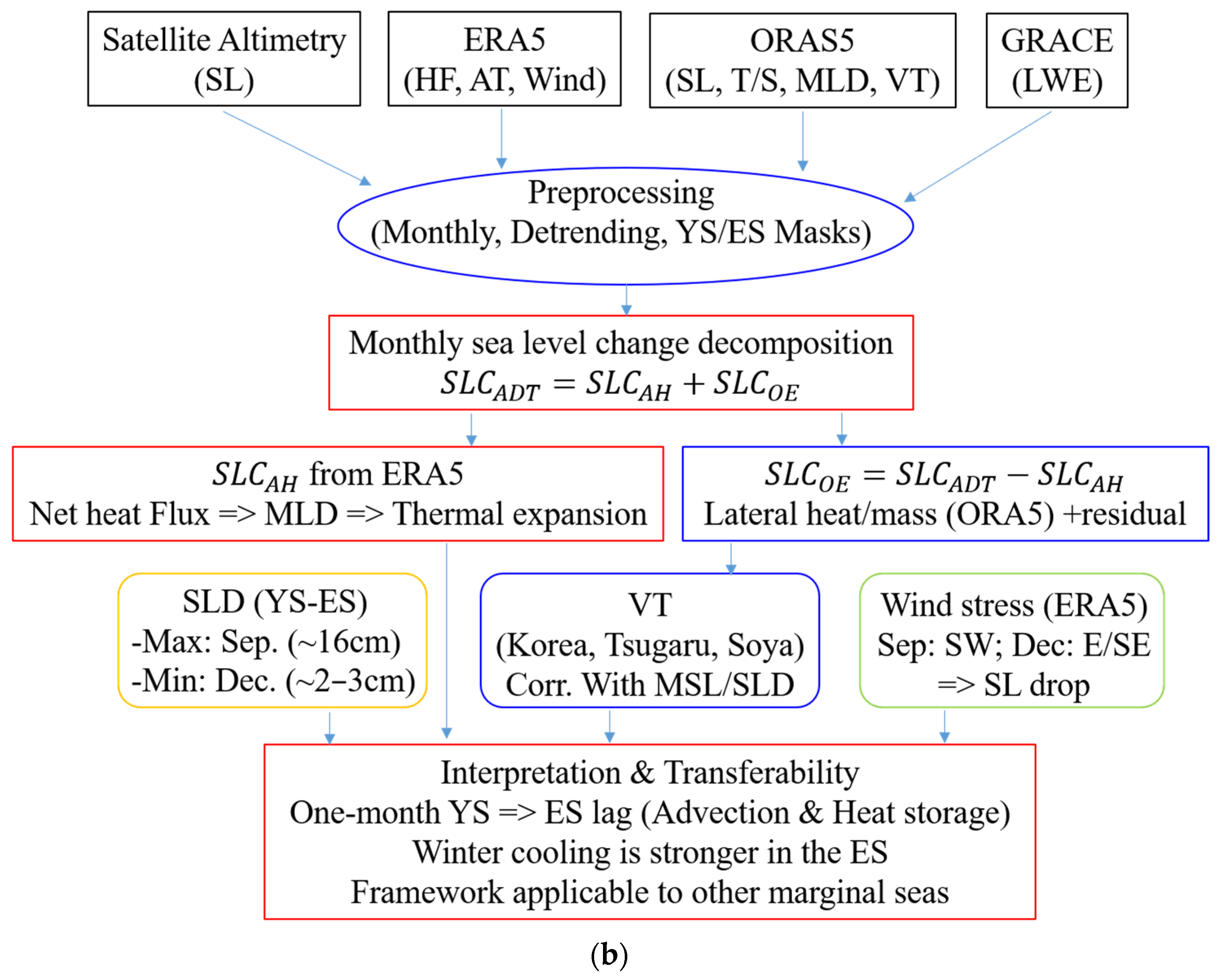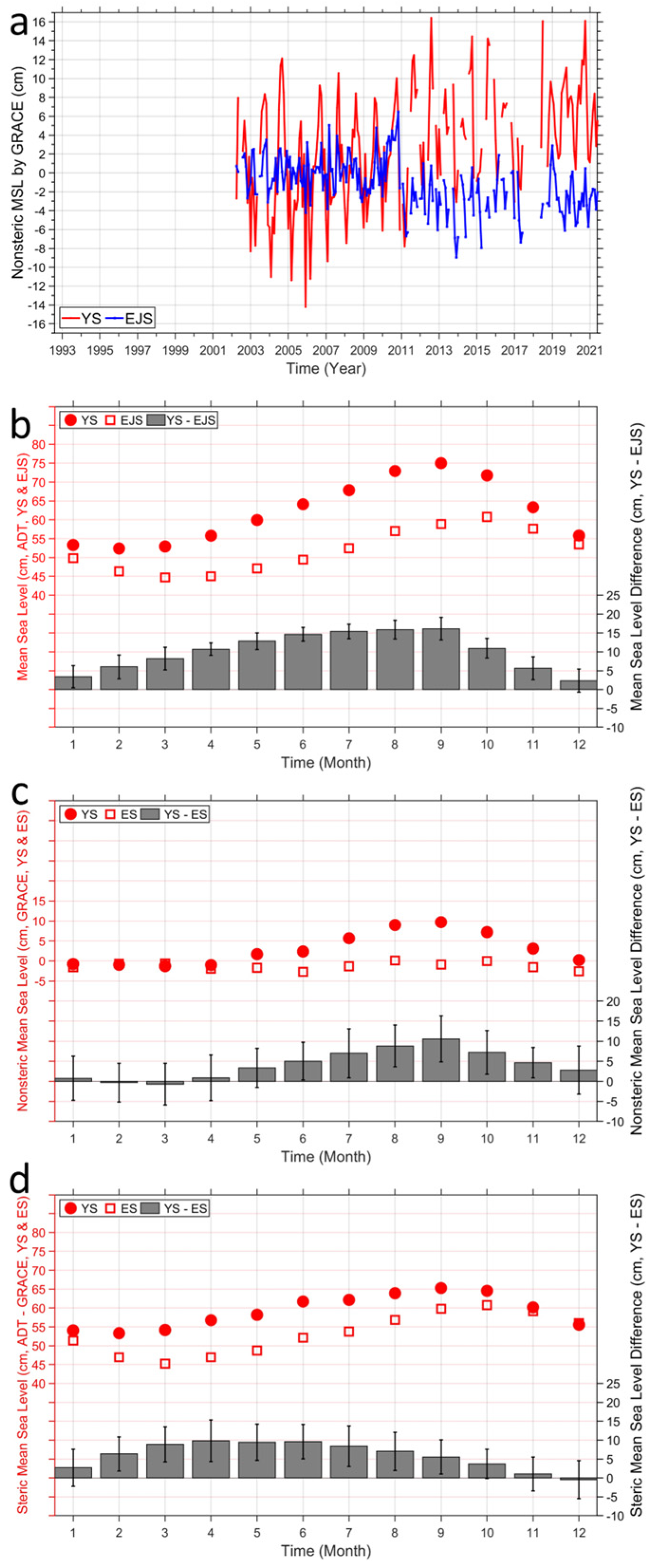 - Evaluated the inter-basin SLD to assess whether the YS MSL is persistently higher than that of the ES and examined its relationship with volume transport through the Korea, Tsugaru, and Soya Straits.