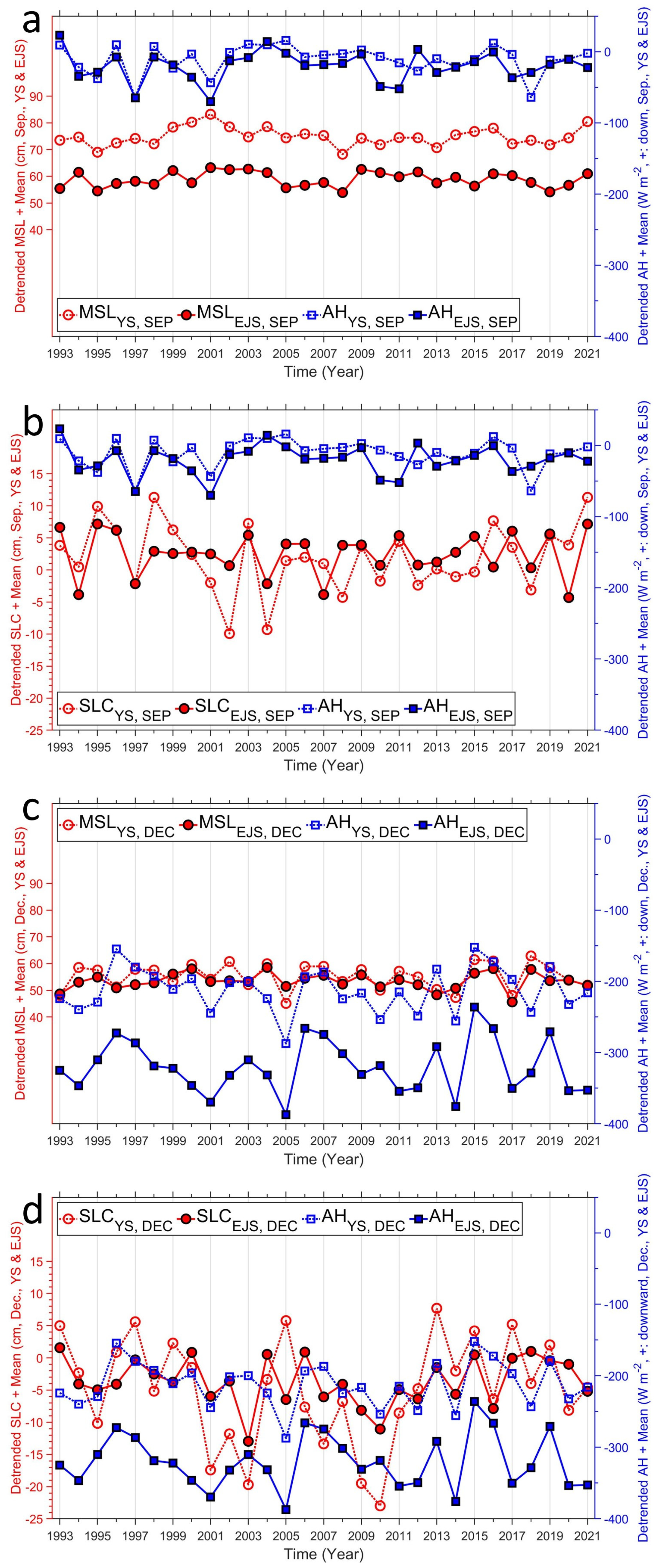 - Decomposed satellite-derived SL variability into dominant components, including the local response to surface air–sea heat fluxes and remote processes associated with lateral heat and mass advection; and
