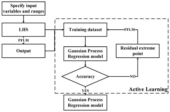 As shown in Figure 3, the training framework is composed of two parts: PFLM and PSML. PFLM is used to calculate the output, including potential flow theory and the lumped mass method. PSML includes parameter selection and Gaussian Process Regression with active learning. This framework aims to achieve a high-precision surrogate model through iterative optimization. The framework is divided into three parts to introduce: data preparation, training, and iterative optimization.