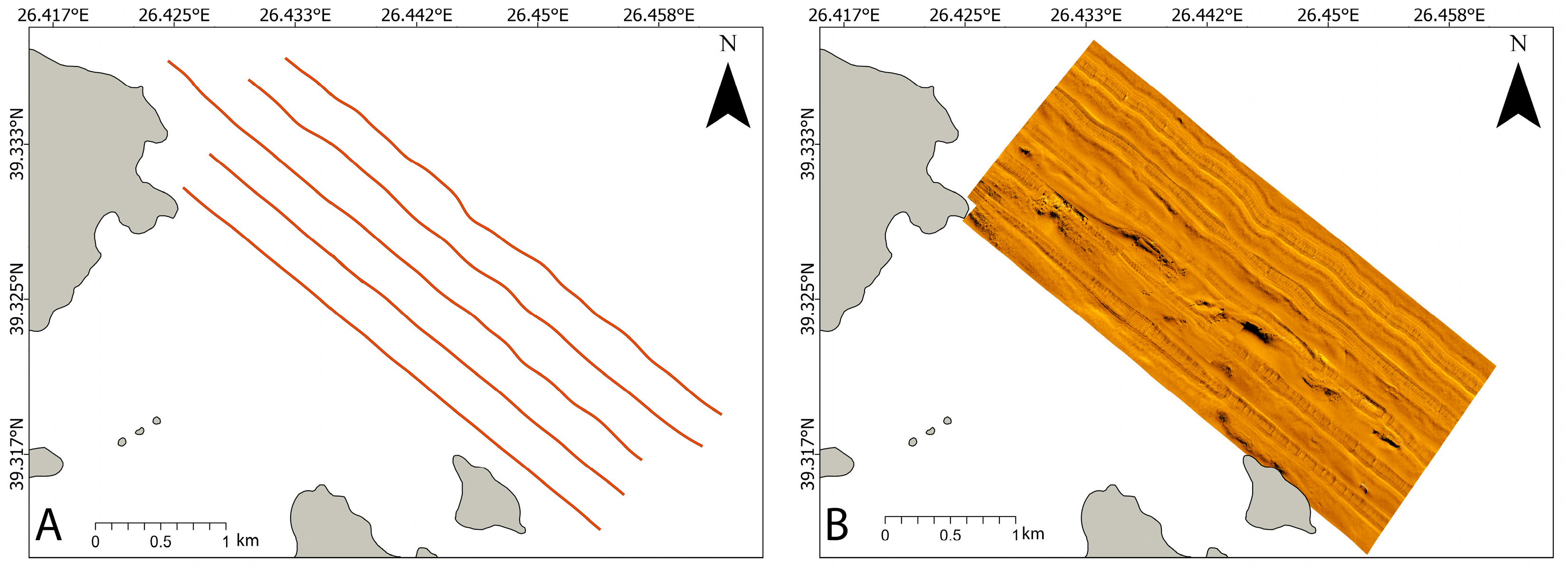 - Lioupa, V.; Petsimeris, I.; Karsiotis, P.; Papavasileiou, F.; Poulos, A.; Andreadis, O.; Manoutsoglou, E.; Hasiotis, T. Sensing underwater landscape off coastal cities: Implications for better management strategies. In Proceedings of the Eleventh International Conference on Remote Sensing and Geoinformation of the Environment (RSCy2025), Paphos, Cyprus, 17–19 March 2025; SPIE: Bellingham, WA, USA, 2025. [Google Scholar]