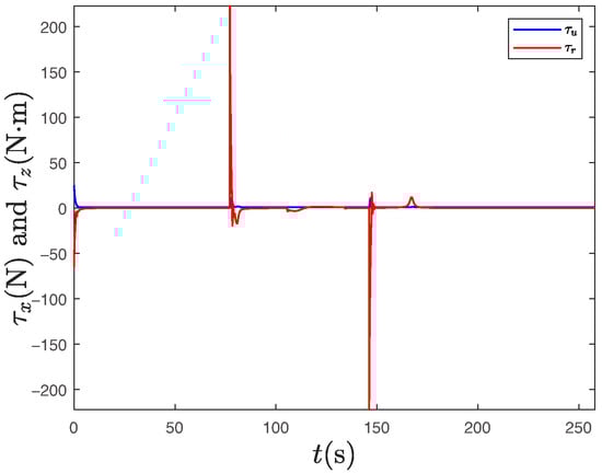 The formula presented introduces an adaptive learning strategy that is based on input saturation. Under this control strategy, if the control torque exceeds a specified saturation value, our adaptive method ceases training the fuzzy system. This strategy effectively minimizes the negative impact of excessive control inputs on performance, in contrast to what is found in the existing literature [41,42]. Furthermore, we develop the adaptive law for the fuzzy system using convex optimization rather than the Lyapunov method, which reduces the coupling within the entire controller. Compared to other adaptive intelligent control strategies [43,44,45], the separate design approach outlined in this paper simplifies the controller’s complexity and facilitates easier parameter tuning.