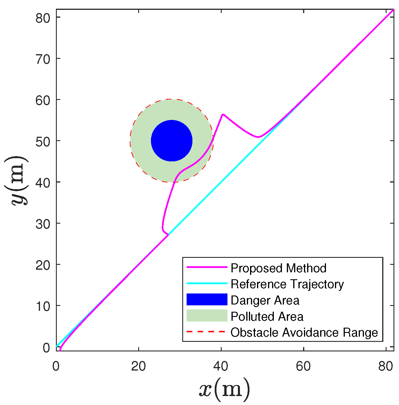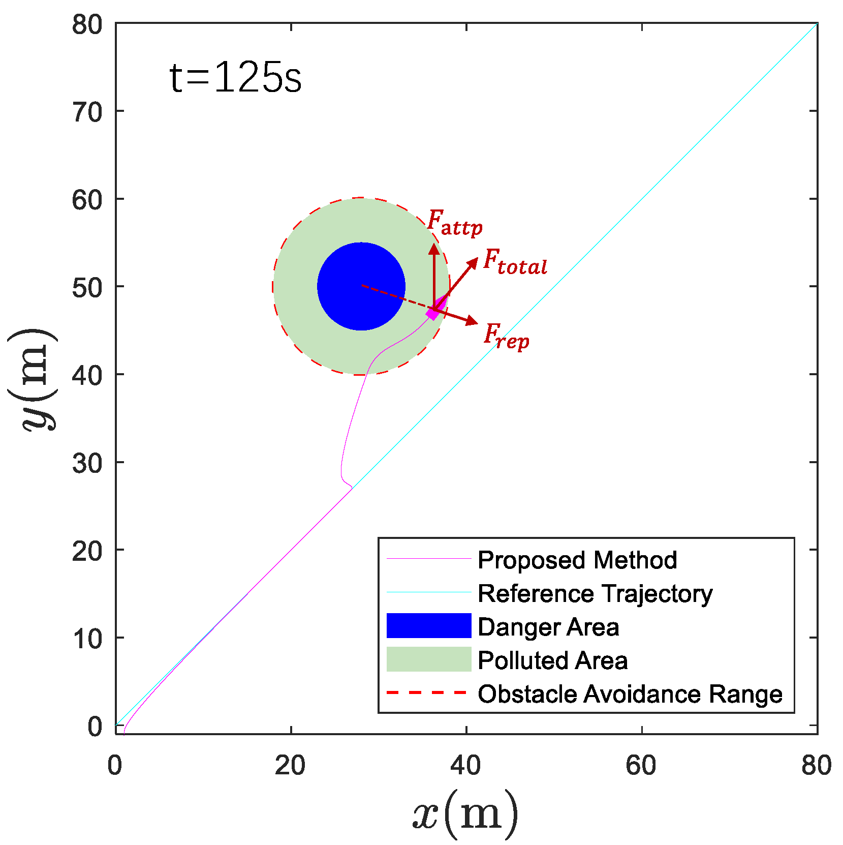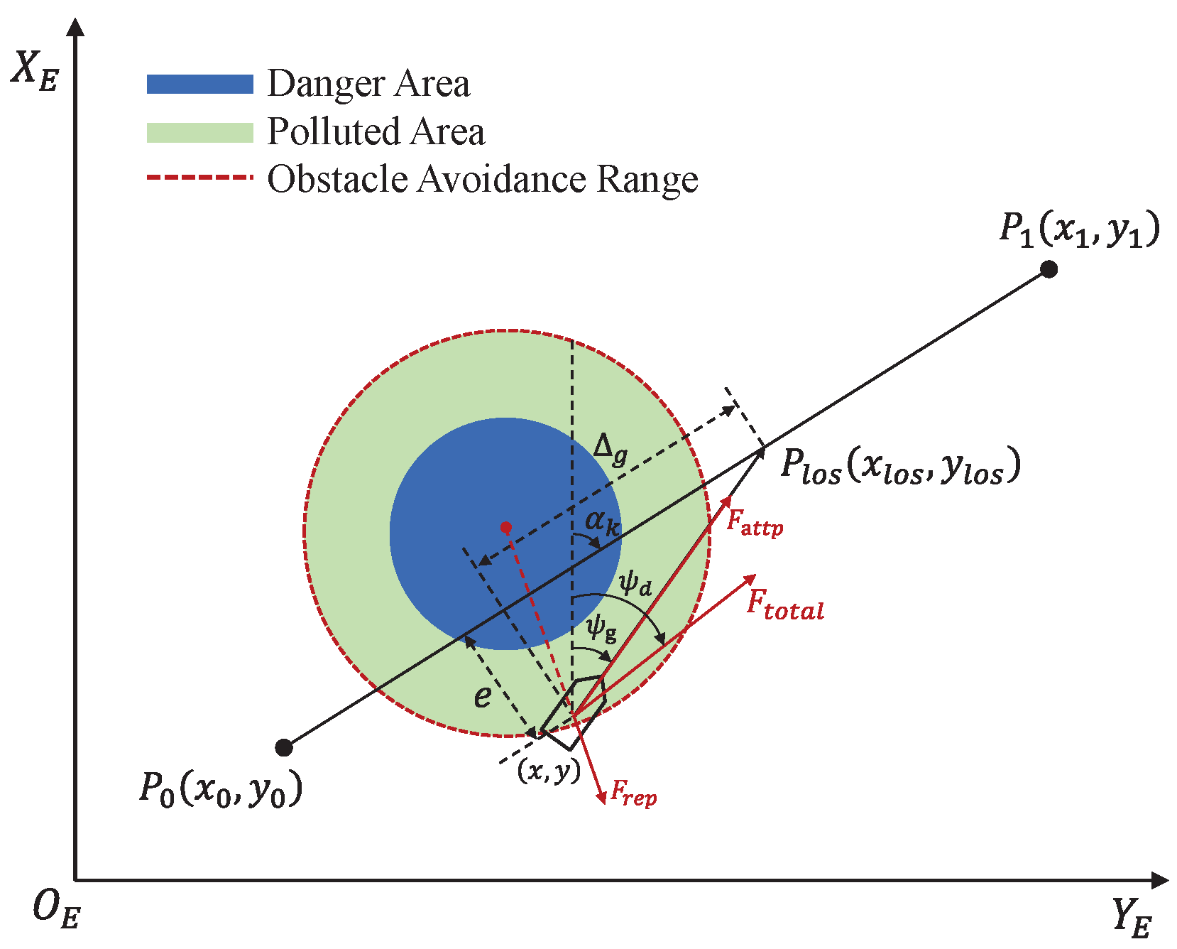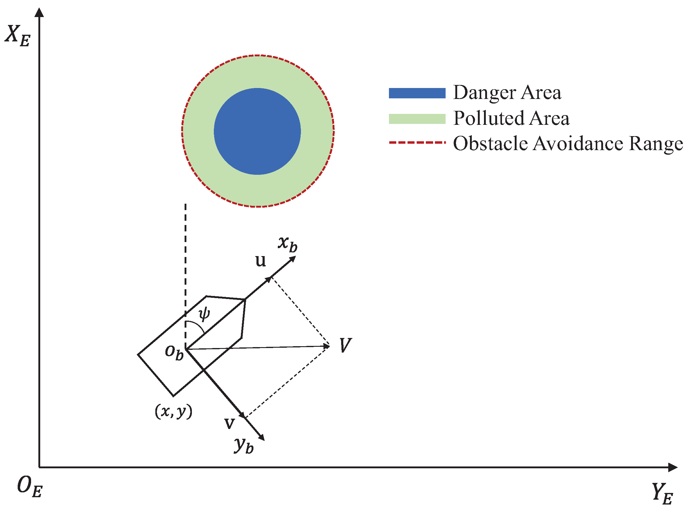 - This paper proposes a novel HiTL intelligent control strategy for USVs used in marine pollution monitoring. Compared with existing methods [33,34,35], the proposed approach leverages human intelligence to better address the challenges of USVs’ navigation and control in complex marine environments, thereby achieving more effective pollutant monitoring. Furthermore, based on the HiTL control framework, a potential field-based obstacle avoidance strategy is designed to achieve effective coordination between autonomous avoidance and manual control, enhancing the security performance of the USVs.