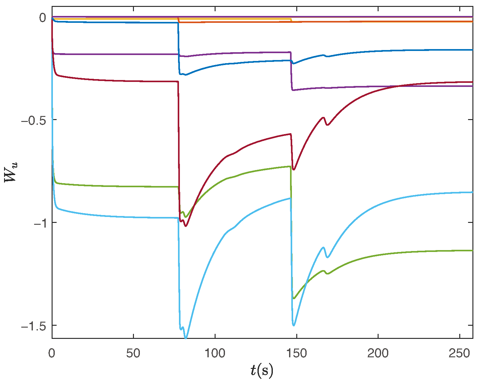 - Based on convex optimization theory, this paper designs an adaptive fuzzy control strategy for USVs to effectively compensate for uncertain dynamics. Moreover, a novel adaptive update mechanism is proposed to address the potential issue of excessive parameter growth under the HiTL framework. Compared with existing approaches [36,37,38], the proposed method effectively mitigates the adverse effects of uncertainties on control performance.