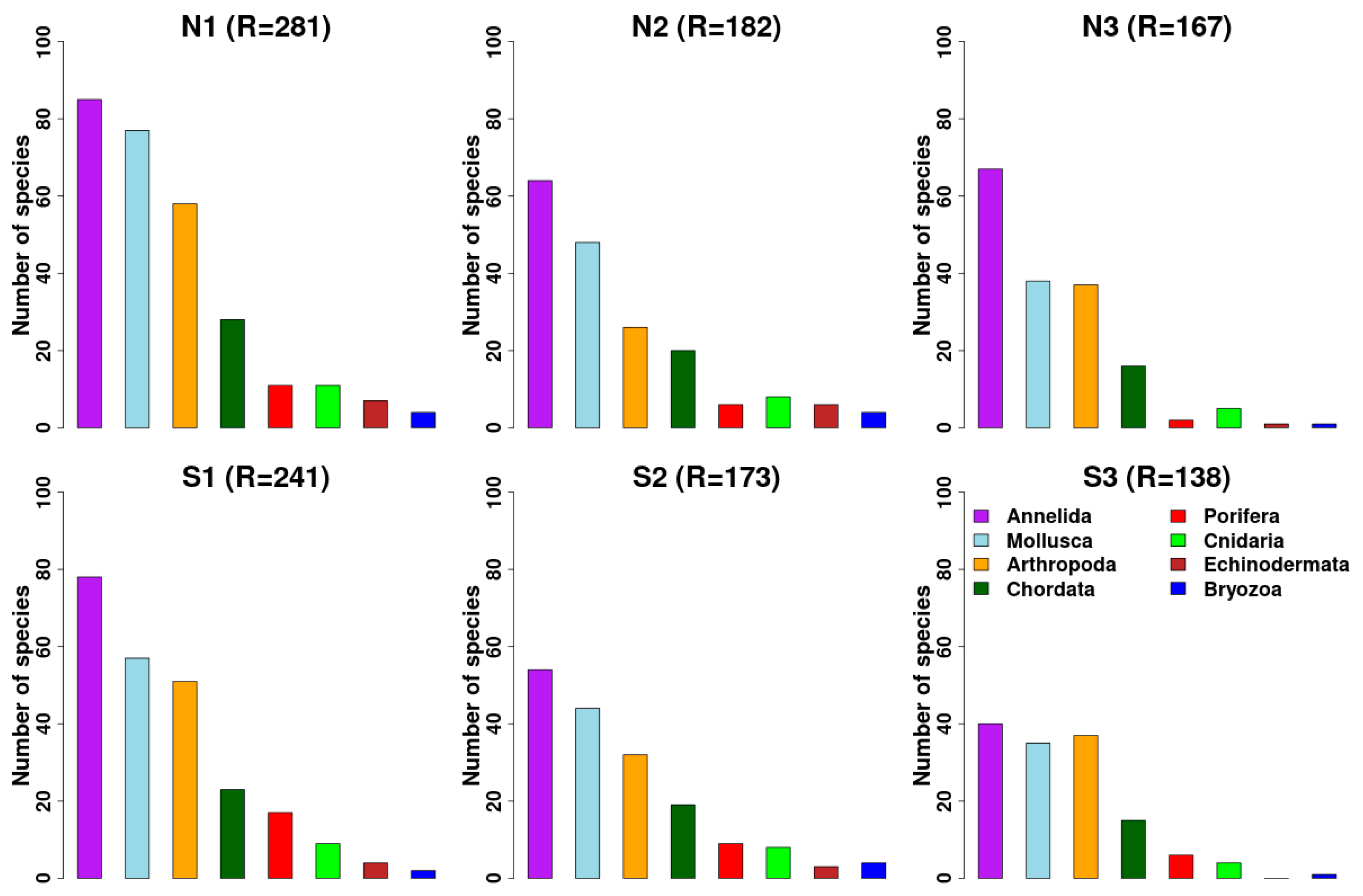 - Lanera, P.; Gambi, M.C. Polychaete distribution in some Cymodocea nodosa meadows around the island of Ischia (Gulf of Naples, Italy). Oebalia 1993, 19, 89–103. [Google Scholar]