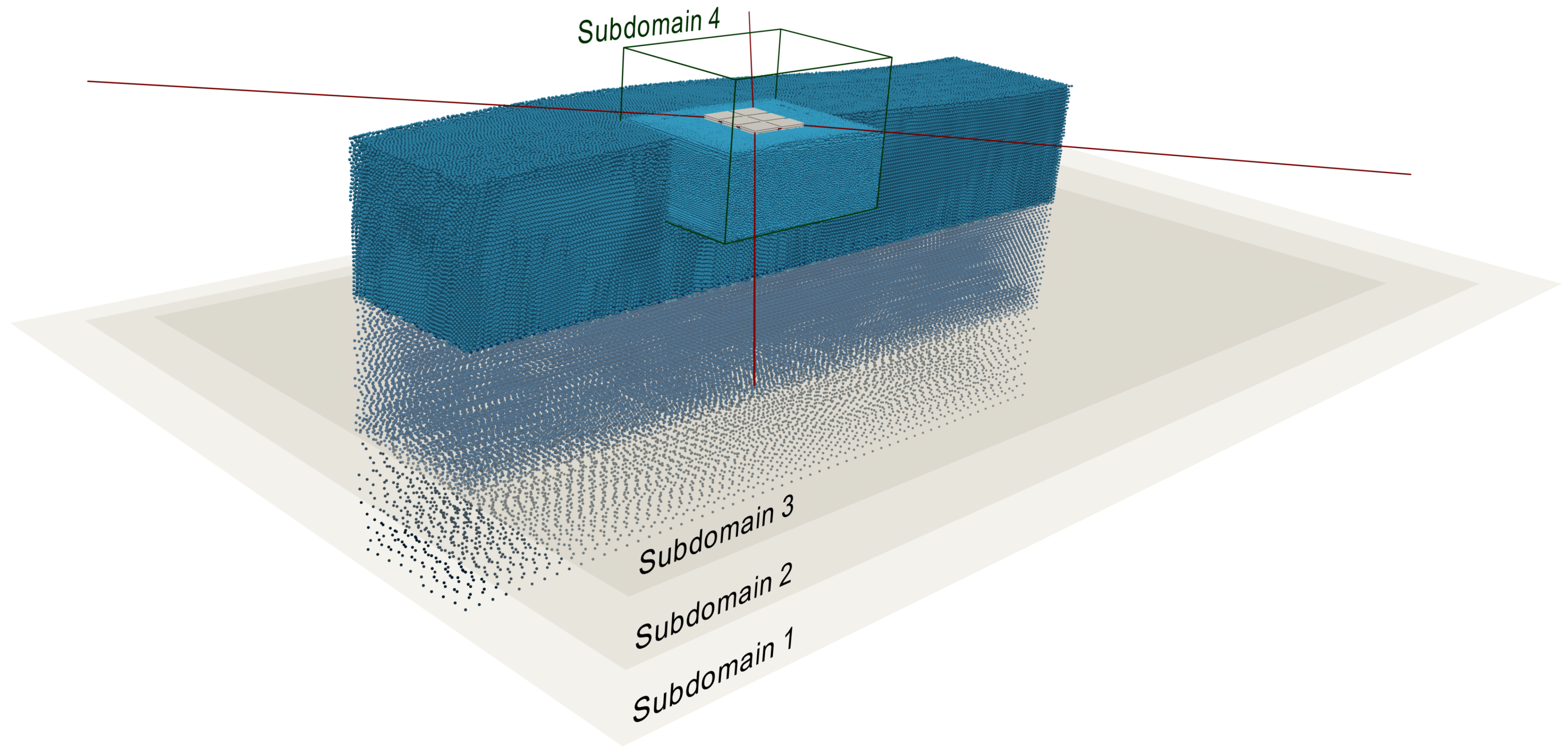 - Ricci, F.; Vacondio, R.; Tafuni, A. Multiscale smoothed particle hydrodynamics based on a domain-decomposition strategy. Comput. Methods Appl. Mech. Eng. 2024, 418, 116500. [Google Scholar] [CrossRef]