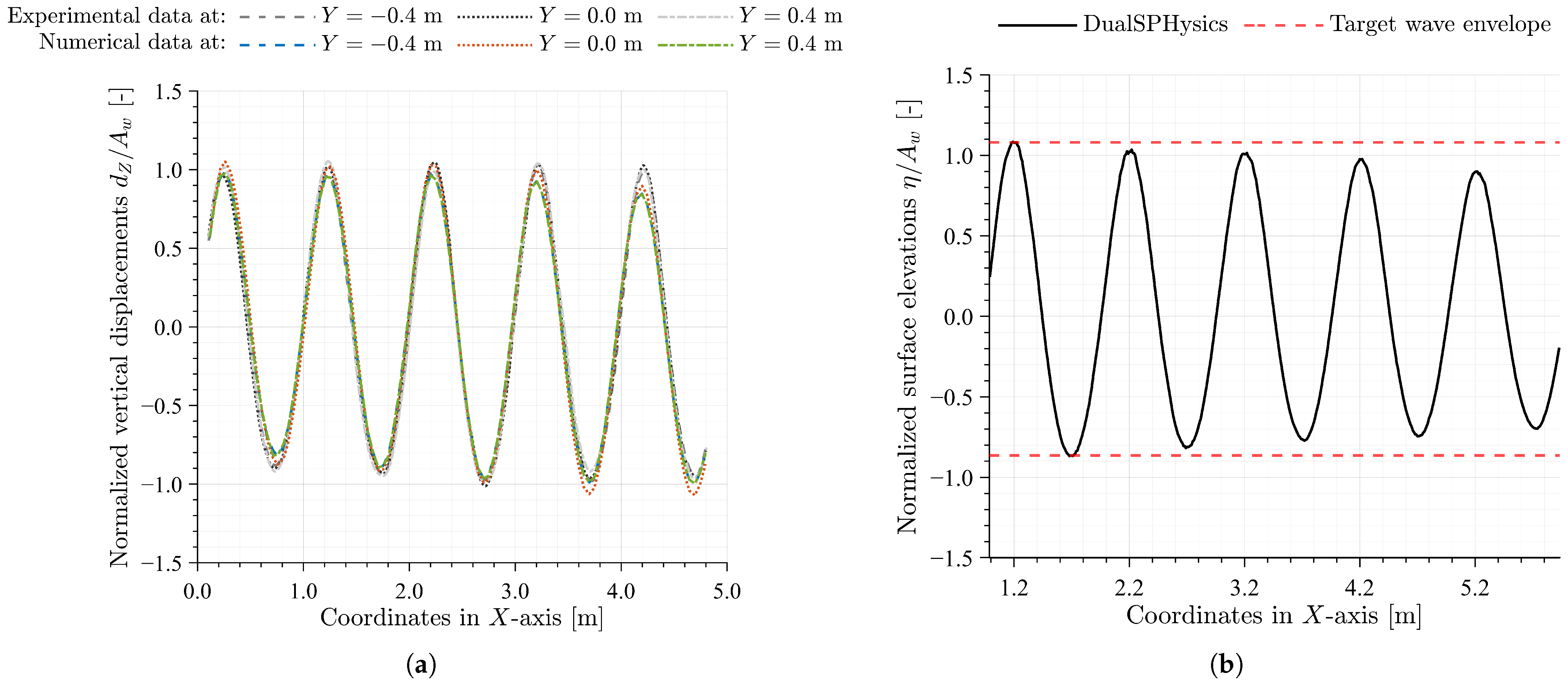 - Altomare, C.; Domínguez, J.M.; Crespo, A.J.C.; González-Cao, J.; Suzuki, T.; Gómez-Gesteira, M.; Troch, P. Long-crested wave generation and absorption for SPH-based DualSPHysics model. Coast. Eng. 2017, 127, 37–54. [Google Scholar] [CrossRef]