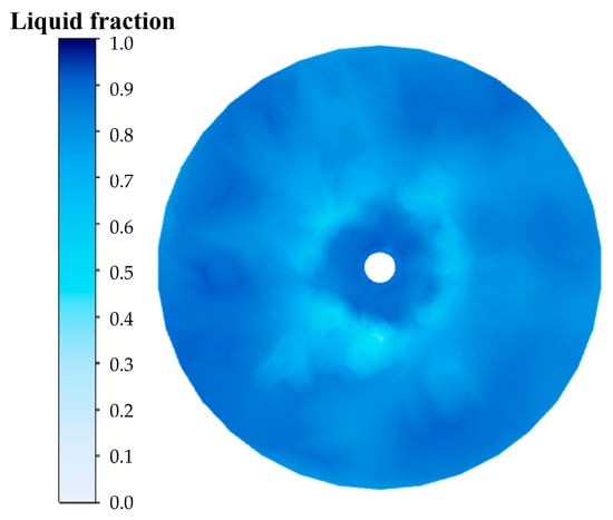 where is the velocity vector, ρp and αp denote the density and volume fraction of the primary phase fluid. In this model, the gas phase is defined as the primary phase, and the seawater/ice-slurry mixture as the secondary phase. Ice is treated as a liquid in a special state within the secondary phase using the enthalpy–porosity approach. The volume fractions in each computational cell satisfy αp + αs = 1, where subscripts p and s represent the primary (gas) and secondary (liquid) phases, respectively. A value of αp = 1 indicates a cell completely filled with gas, while αs = 1 corresponds to a cell fully occupied by the liquid mixture.