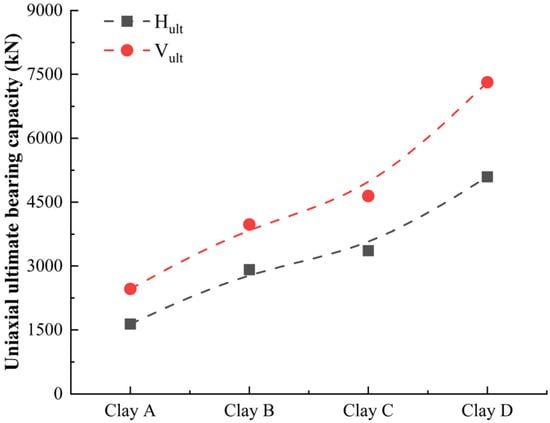 Uniaxial ultimate bearing capacity Hult and Vult for homogeneous clay.