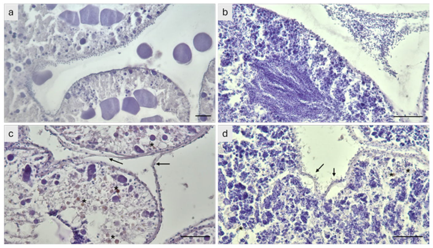 - Schäfer, S.; Köhler, A. Gonadal Lesions of Female Sea Urchin (Psammechinus miliaris) after Exposure to the Polycyclic Aromatic Hydrocarbon Phenanthrene. Mar. Environ. Res. 2009, 68, 128–136. [Google Scholar] [CrossRef] [PubMed]