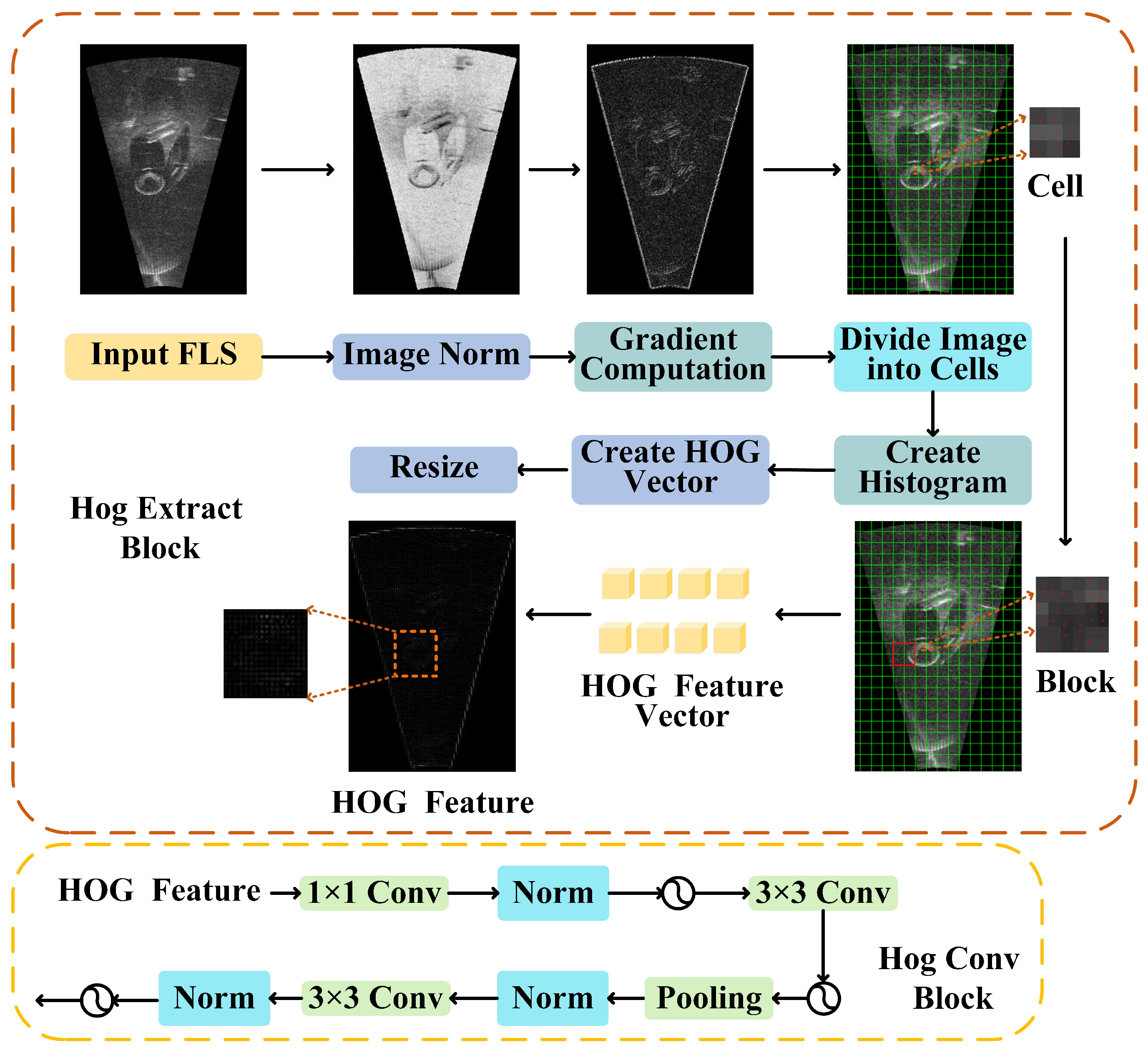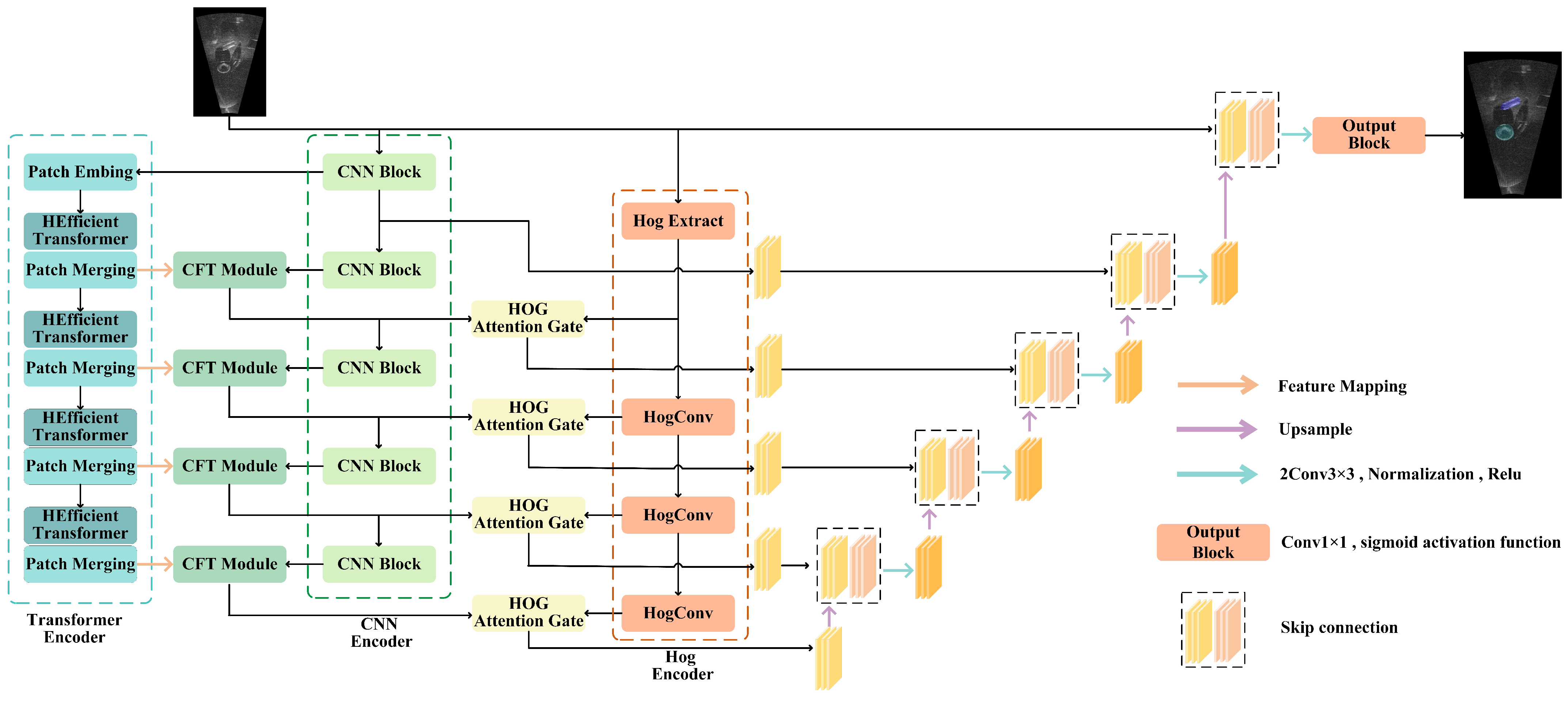 Liu, J.; Dong, Y.; Chen, G.; Chen, Y.; Gao, J.; Zhang, F. TriEncoderNet: Multi-Stage Fusion of CNN, Transformer, and HOG Features for Forward-Looking Sonar Image Segmentation. J. Mar. Sci. Eng. 2025, 13, 2295. https://doi.org/10.3390/jmse13122295