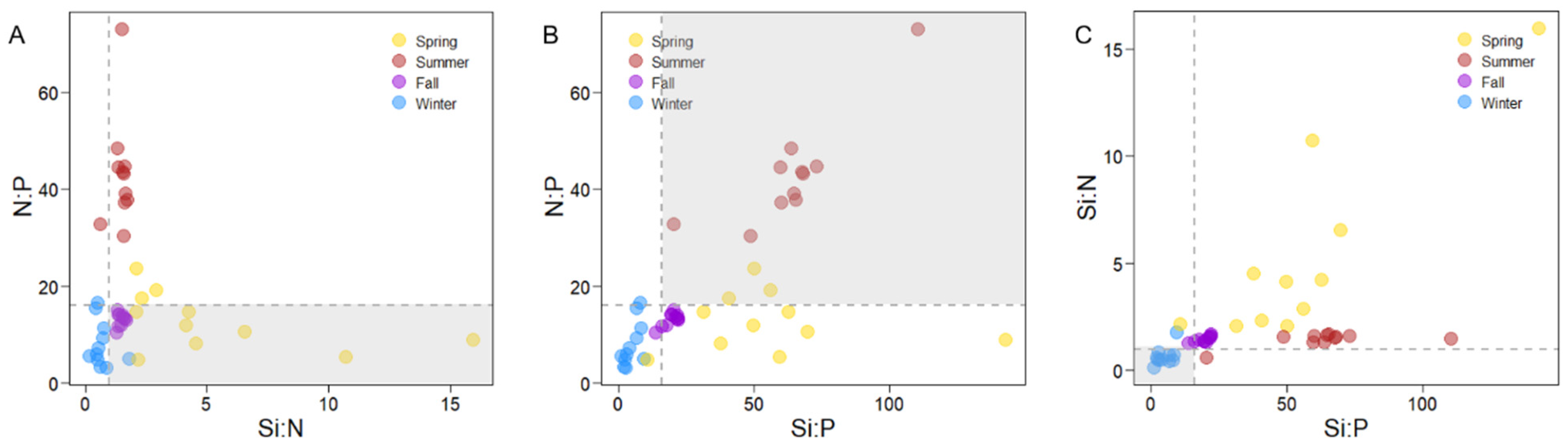 - Brzezinski, M.A. The Si:C:N ratio of marine diatoms: Interspecific variability and the effect of some environmental variables. J. Phycol. 1985, 21, 347–357. [Google Scholar] [CrossRef]