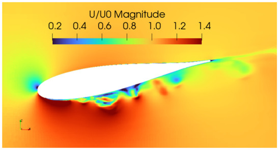 We also carried out, although not shown here, a brief sensitivity check with the FLUENT solver using the Egorov damping or SST-E method, focusing on the parameter B in Equation (14) and the foil lift force. We used values of , and 100. The results indicated that the force trends were not greatly affected by this parameter. This is likely since the coefficient influences the amount of damping applied, not where the damping is applied, which is dictated more by the indicator fields or A.