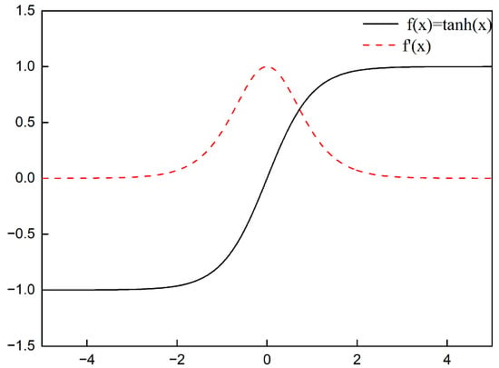 In Formula (12), L s is the critical distance for safe collision avoidance, and the core function is the hyperbolic tangent function y = tanh ( x ) . The function’s graph is shown in Figure 4: