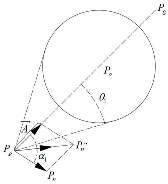 At this point, the ‘target attraction vector’ A in V-RRT algorithm in this paper will be triggered. A is defined by Formula (15). With the effect of A , the extended child node P n and its coordinates no longer satisfy Formula (6), and P n is given by Formula (16):