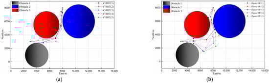 Figure 9. V-RRT collision avoidance path point (a) and classic RRT collision avoidance path point (b).