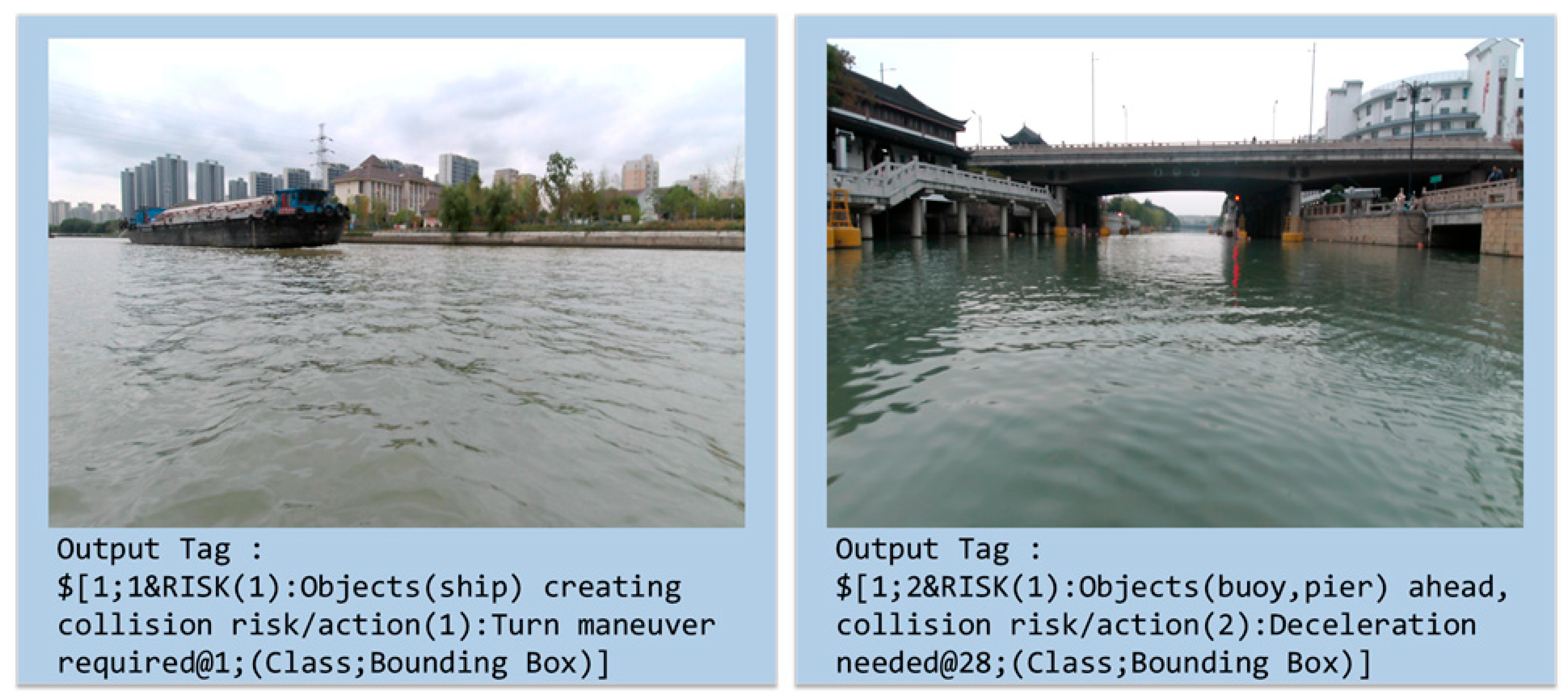 The main objectives of this study are as follows: First, to design a multimodal maritime safety assessment system combining YOLO-based object detection with LLaVA vision–language understanding. Second, to implement a binary risk assessment framework that clearly distinguishes between safe navigation conditions and warning states requiring intervention. Third, to endow the model with the ability to predict appropriate navigation actions. Fourth, to develop a compressed yet parsable tag format that can encode object information, risk levels, navigation actions, and reasoning in a single structured representation. Fifth, to ensure logical consistency between risk assessment and navigation actions.