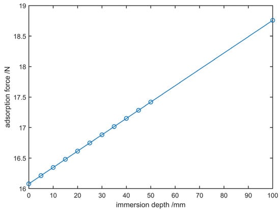 Figure 10). However, when the immersion depth does not exceed 100 mm, the seabed maximum adsorption force is no more than 18.8 N. Therefore, according to the design of the current bottom-landing scheme, the safety of detaching from the seabed is relatively high.