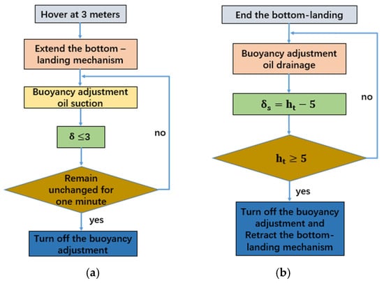 25], and the control strategy for bottom-landing and bottom-leaving. Based on the research results of the key technologies, this study proposes to adopt the drive of a variable buoyancy adjustment mechanism, supplemented by the support of a telescopic bottom-landing mechanism, and combine the corresponding control strategy to complete the research on the autonomous bottom-landing technology of deep-sea AUVs. Finally, the application tests in water tanks, lakes, and seas will be completed.