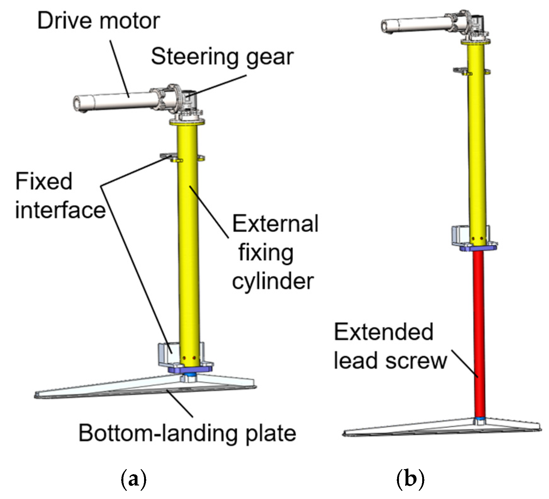 2.5. Development of “Biped” Telescopic Bottom-Landing Mechanism
