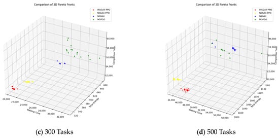 | Index | Number of Tasks | Number of AGV | INSGAII-PPO | NSGAII-PPO | NSGAII | MOPSO | ||||