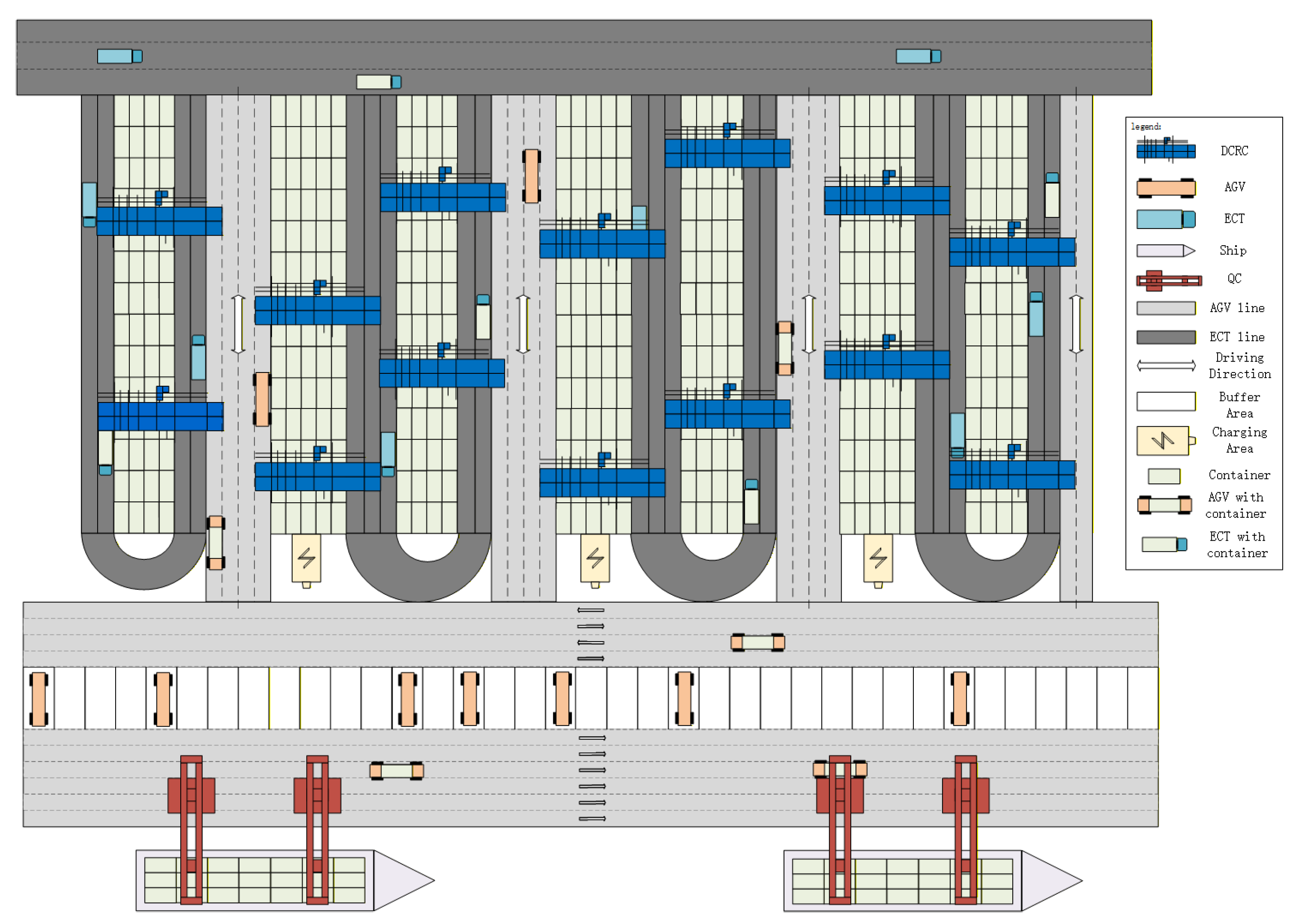- Upon reaching the specified bay position, the AGVs move to a buffer zone. It can only leave the buffer zone and exit the yard after the YC has retrieved the container.