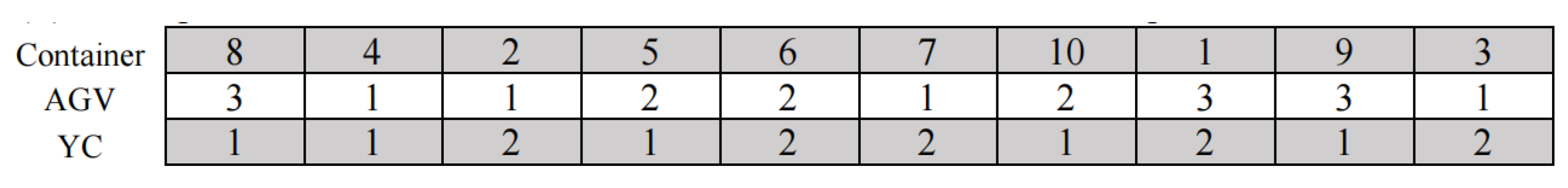 - For YCs, taking YC1 as an example, it first unloads Container No. 8 from AGV3, then sequentially unloads Container No. 4 from AGV1, Container No. 5 from AGV2, Container No. 10 from AGV2, and Container No. 9 from AGV3.