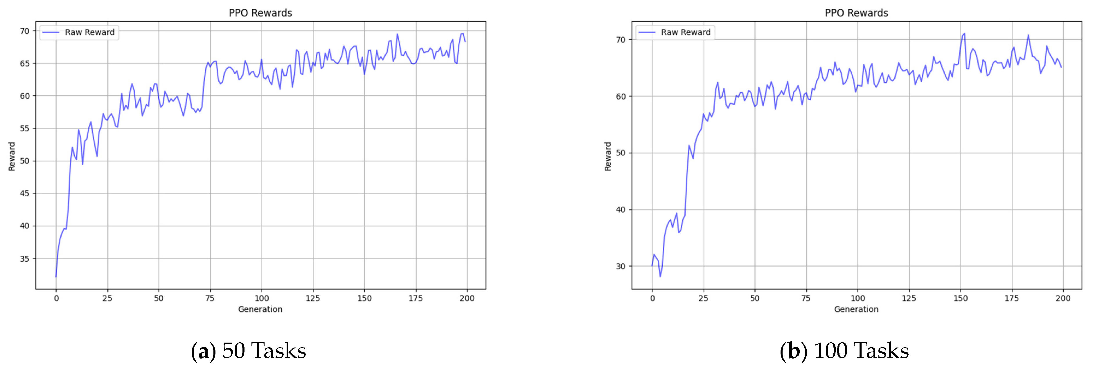 - Zhou, Y.; Jiang, J.; Shi, Q.; Fu, M.; Zhang, Y.; Chen, Y.; Zhou, L. GA-HPO PPO: A Hybrid Algorithm for Dynamic Flexible Job Shop Scheduling. Sensors 2025, 25, 6736. [Google Scholar] [CrossRef]