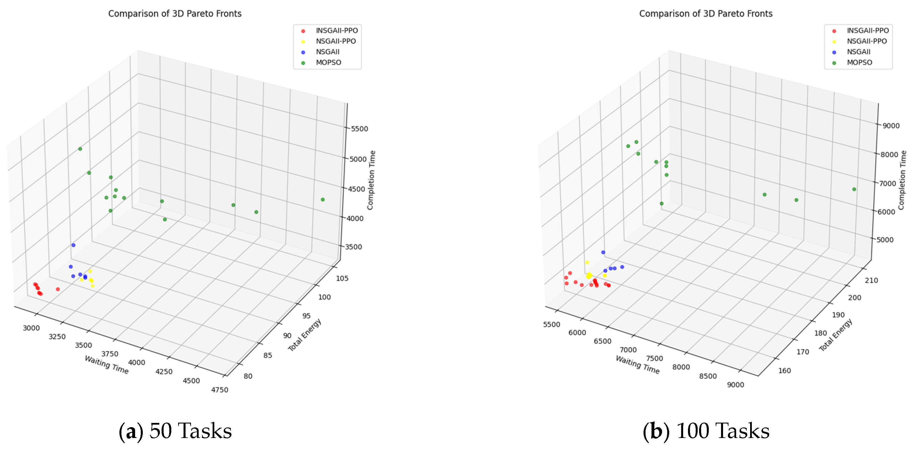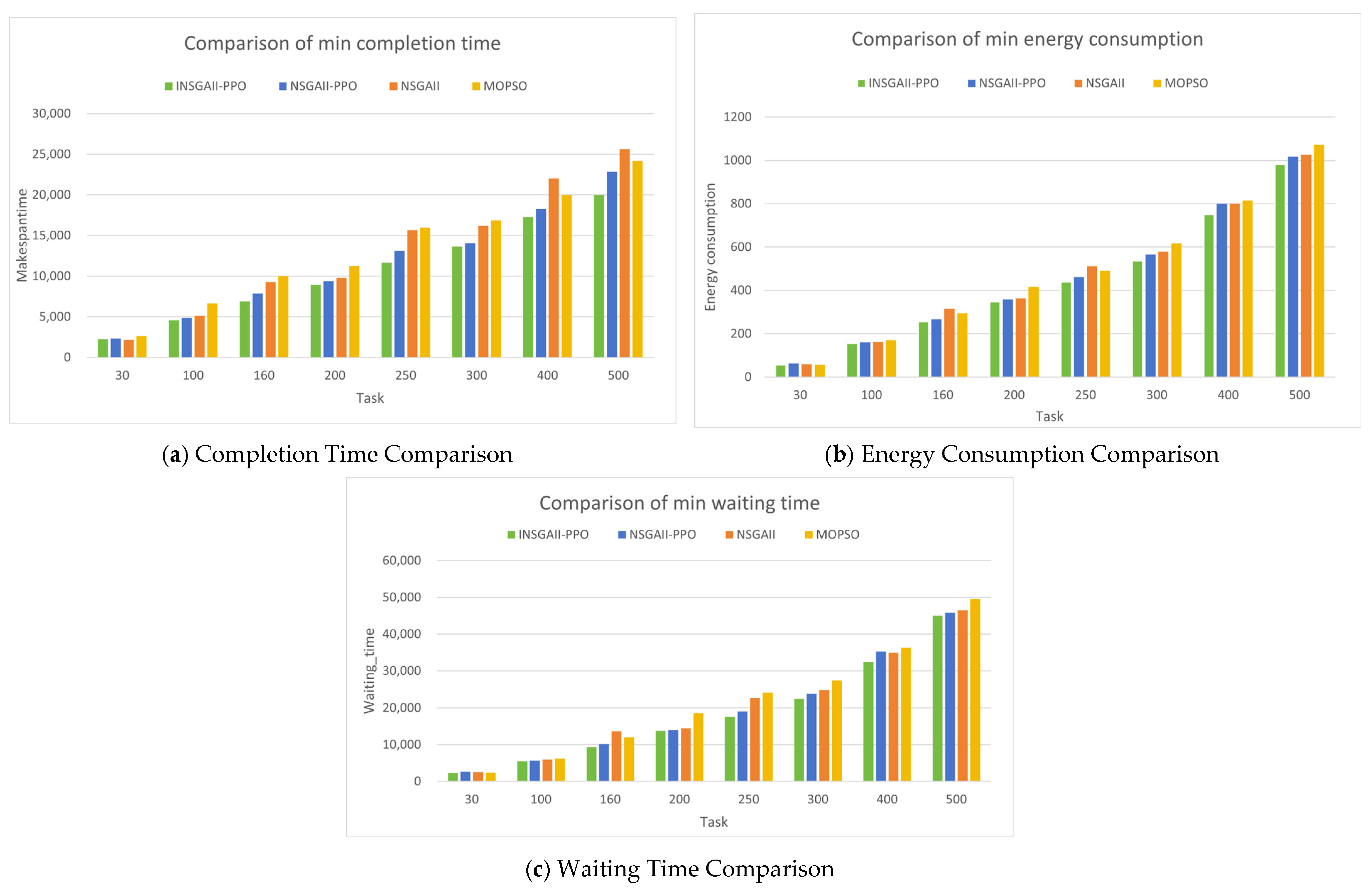 | Completion Time | Energy Consumption | Waiting Time | Completion Time | Energy Consumption | Waiting Time | |