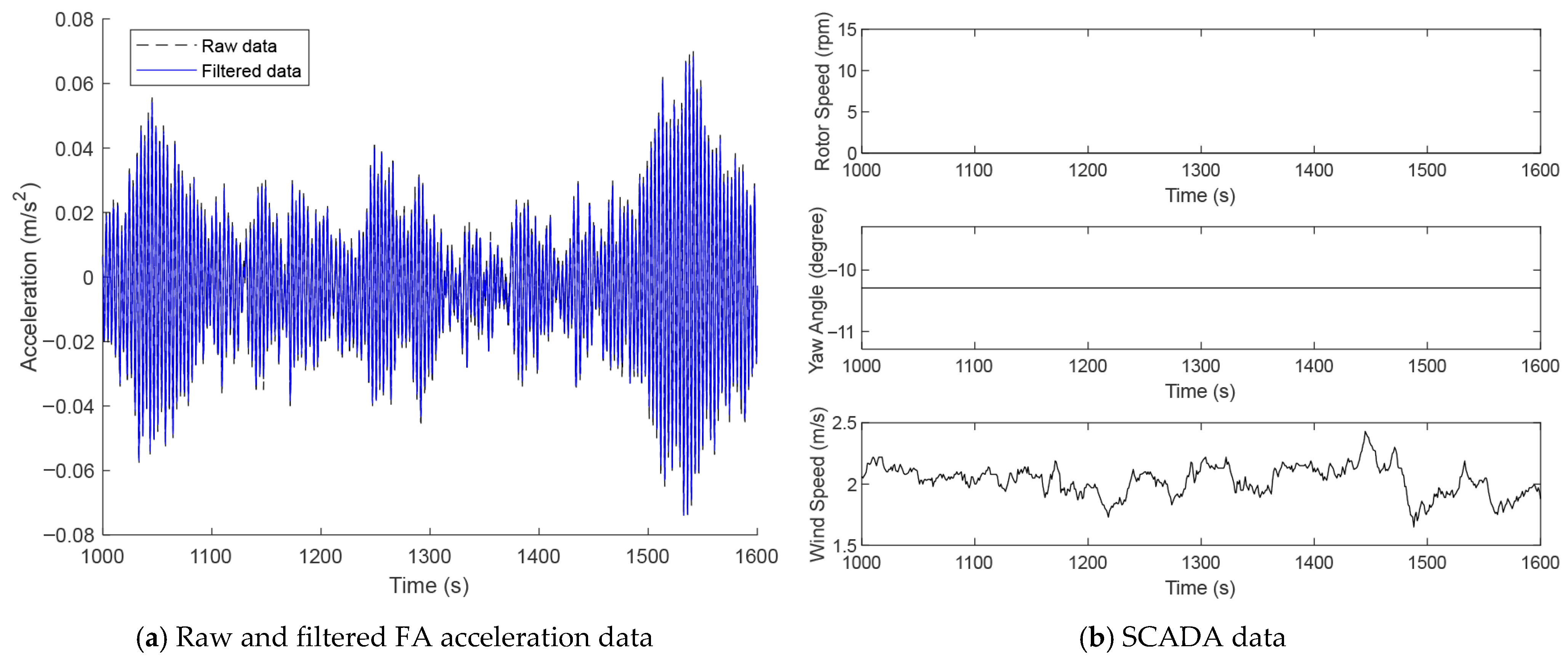 - Dai, K.; Wang, Y.; Huang, Y.; Zhu, W.; Xu, Y. Development of a modified stochastic subspace identification method for rapid structural assessment of in-service utility-scale wind turbine towers. Wind Energy 2017, 20, 1687–1710. [Google Scholar] [CrossRef]
