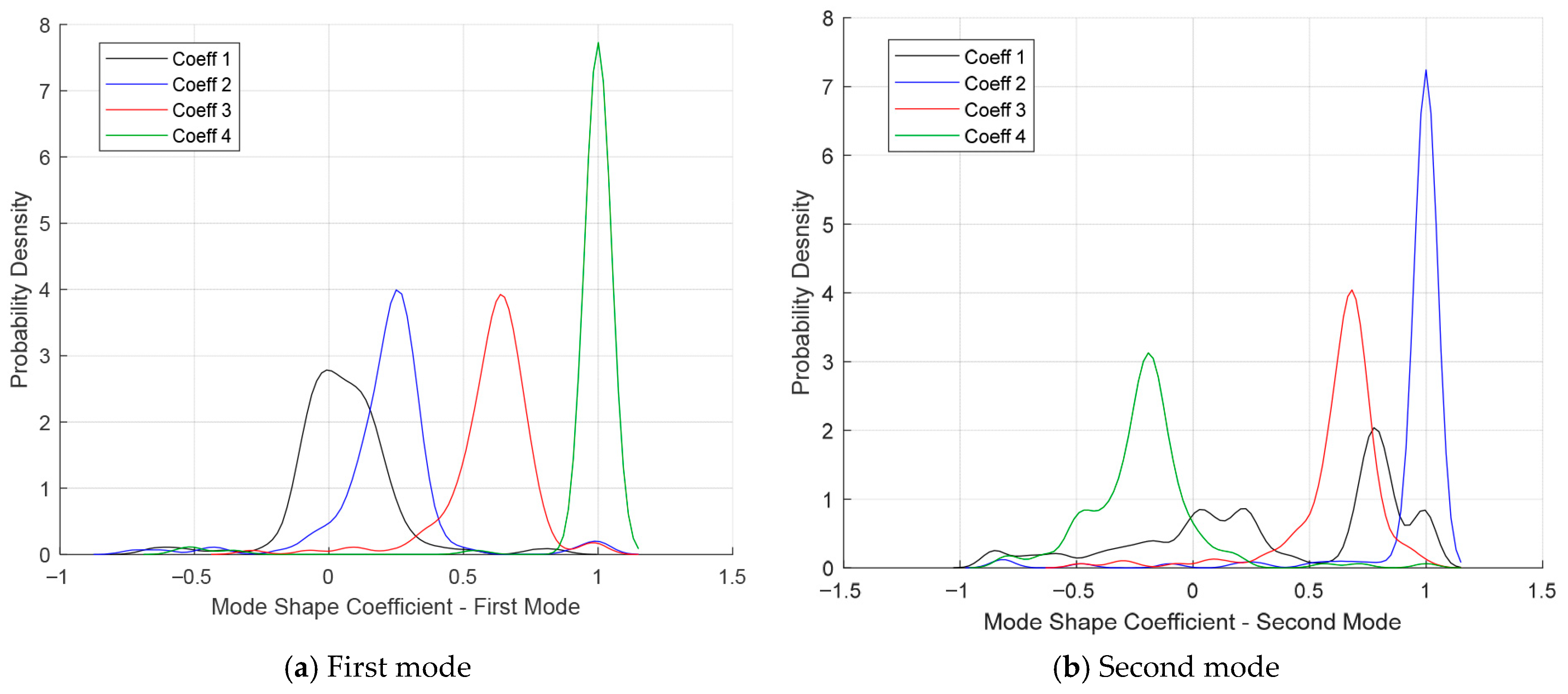 - Valikhani, M.; Nabiyan, M.; Song, M.; Jahangiri, V.; Ebrahimian, H.; Moaveni, B. Bayesian finite element model inversion of offshore wind turbine structures for joint parameter-load estimation. Ocean Eng. 2024, 313, 119458. [Google Scholar] [CrossRef]