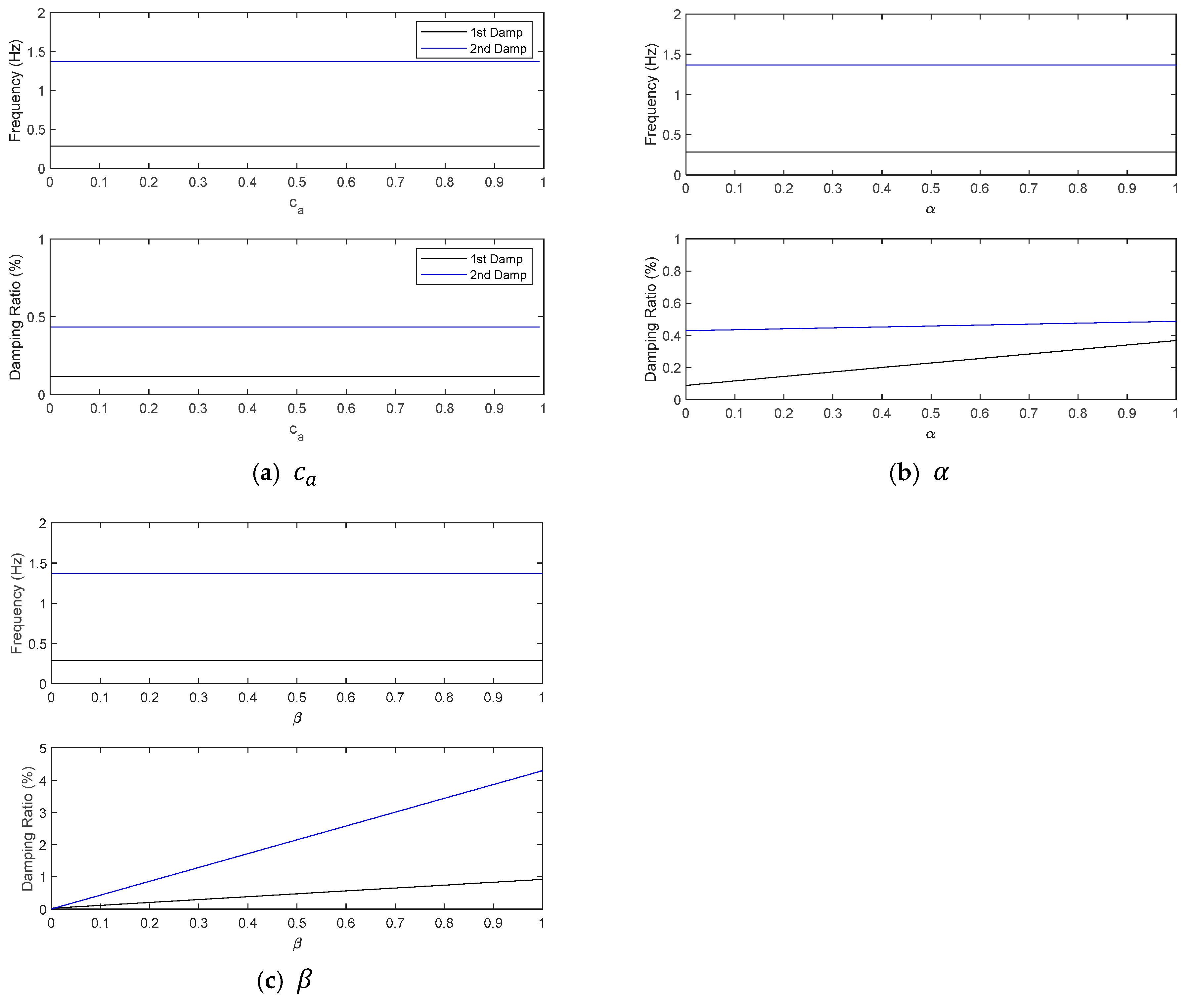 - Chen, C.; Duffour, P.; Dai, K.; Wang, Y.; Fromme, P. Identification of aerodynamic damping matrix for operating wind turbines. Mech. Syst. Signal Process. 2021, 154, 107568. [Google Scholar] [CrossRef]