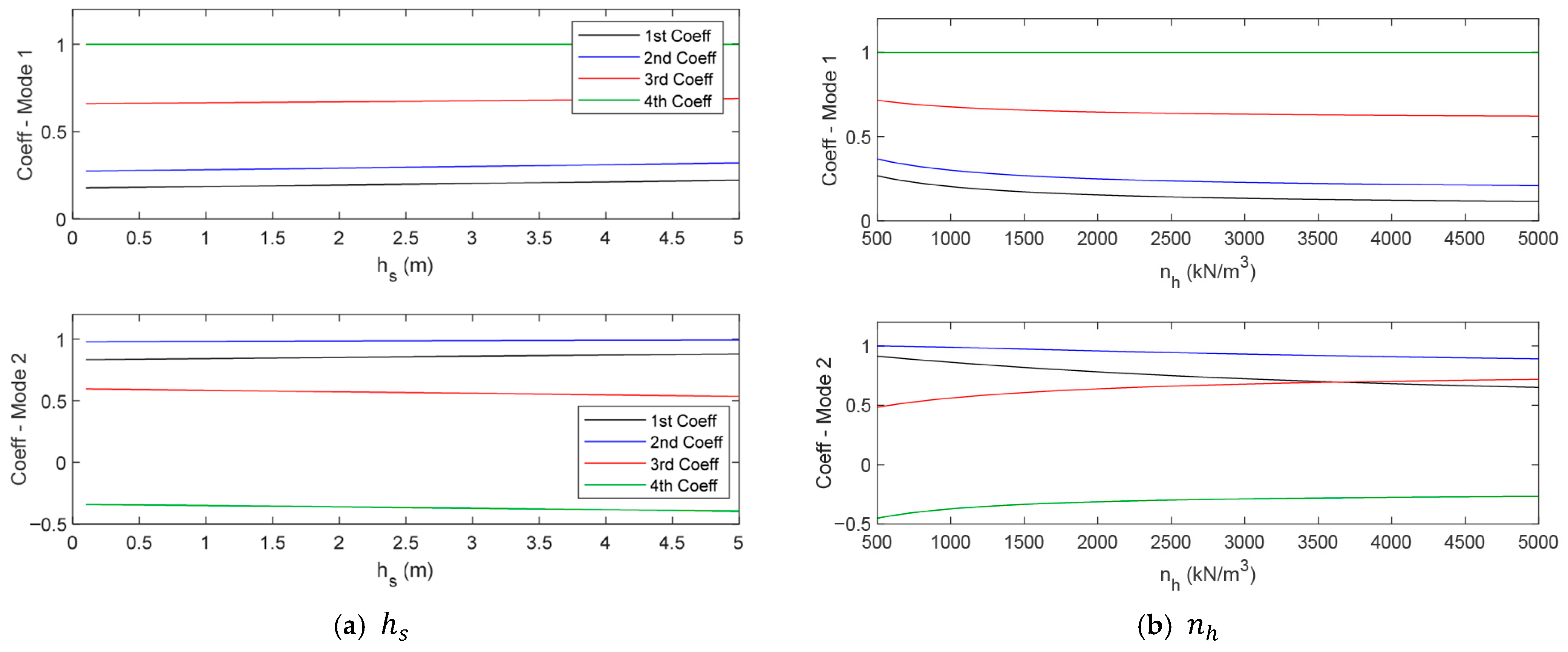 - The model updating result is not unique, which is confirmed by the fact that the combination of the scour depth and foundation stiffness coefficient cannot be uniquely determined given only the identified modal properties. It is suggested that scour monitoring could assist in obtaining a better model updating result.