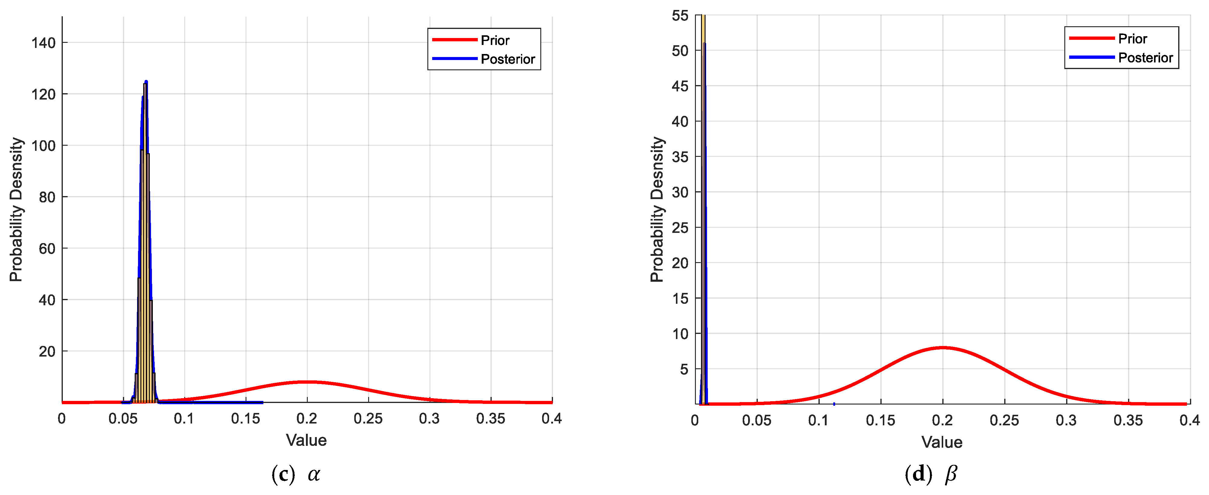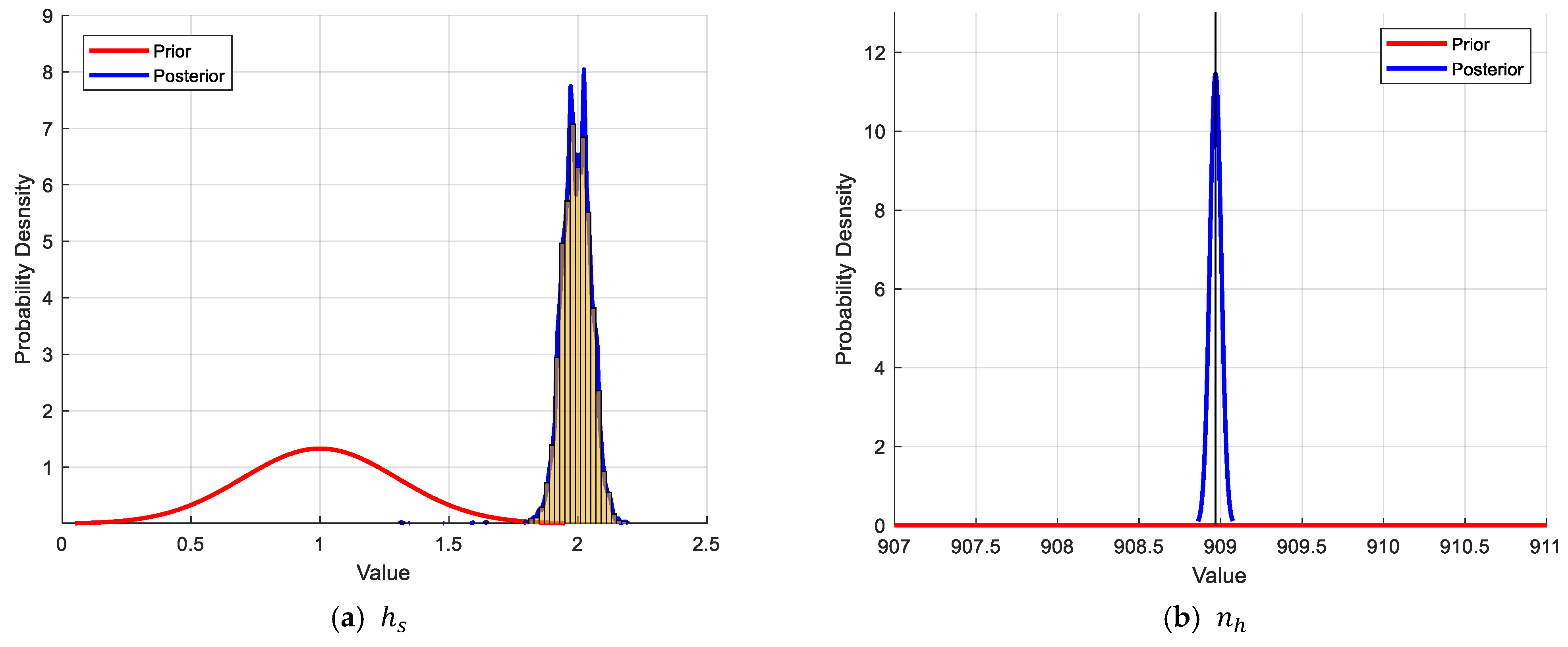 - Zhang, E.L.; Feissel, P.; Antoni, J. A comprehensive Bayesian approach for model updating and quantification of modeling errors. Probab. Eng. Mech. 2011, 26, 550–560. [Google Scholar] [CrossRef]