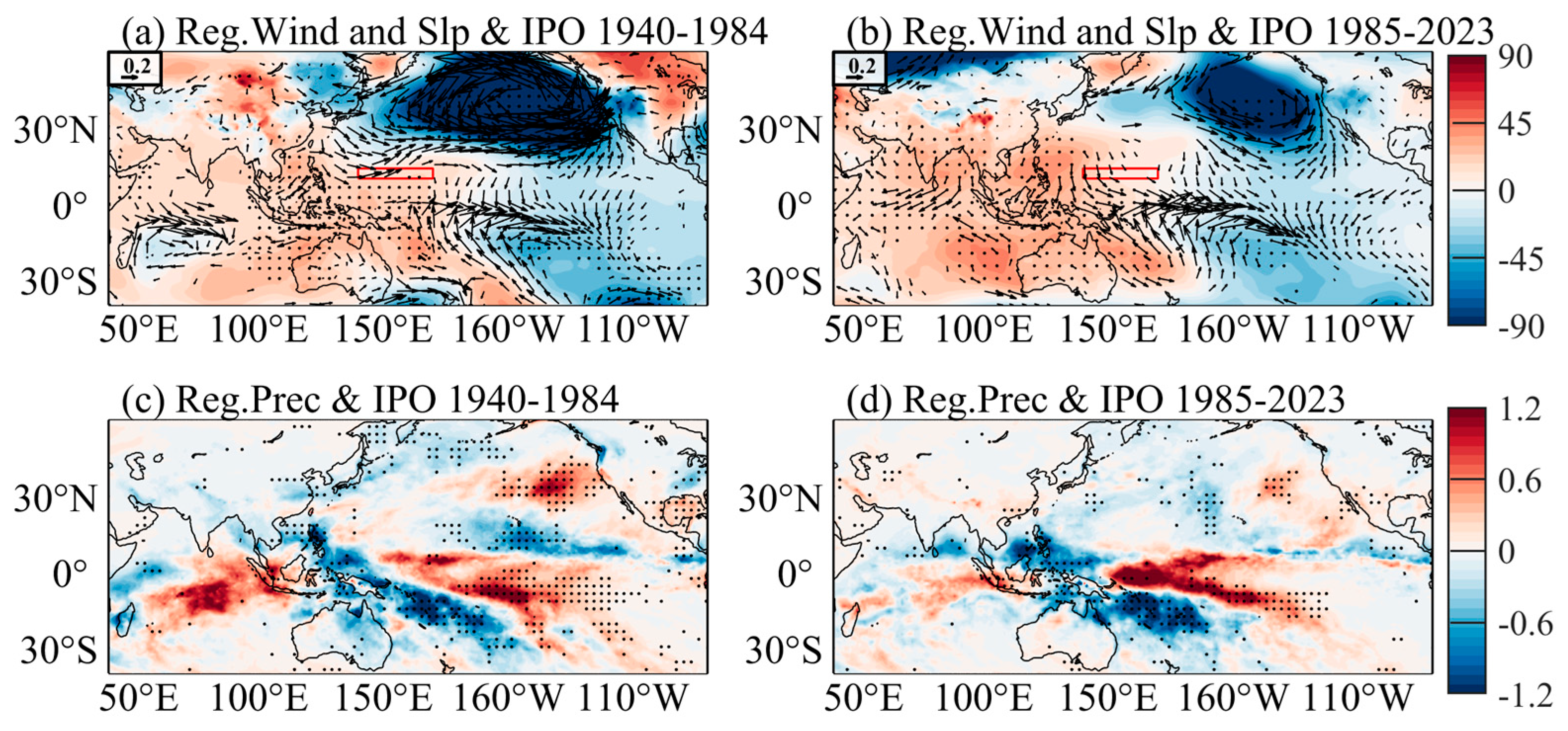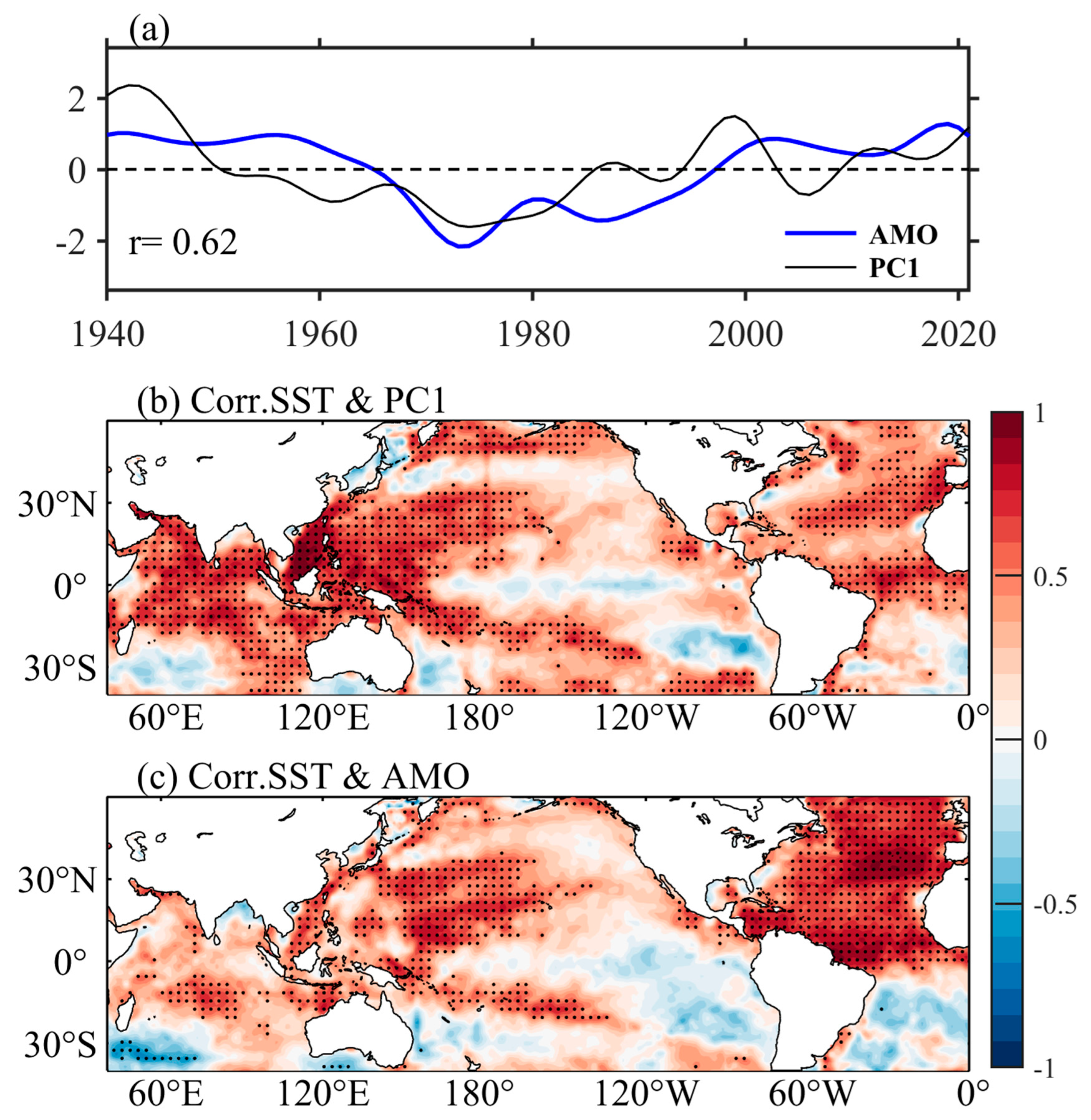 - Xu, C.; Tao, L.; Rong, Y.; Xu, C. Relative importance of global warming, the IPO, and the AMO in surface air temperature and terrestrial precipitation. Int. J. Climatol. 2024, 44, 923–952. [Google Scholar] [CrossRef]