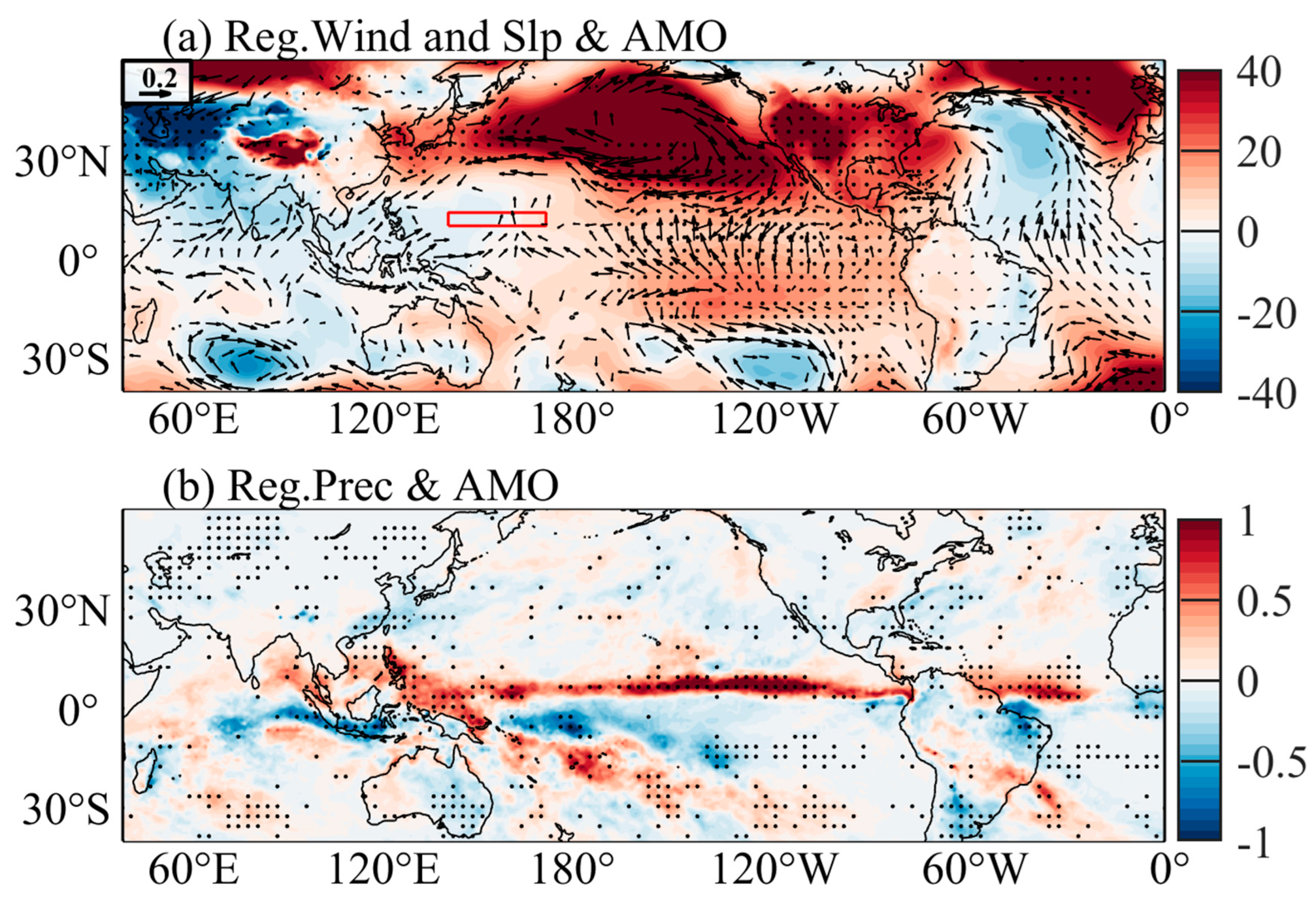 - Yang, Y.-M.; An, S.-I.; Wang, B.; Park, J.H. A global-scale multidecadal variability driven by Atlantic multidecadal oscillation. Natl. Sci. Rev. 2020, 7, 1190–1197. [Google Scholar] [CrossRef]