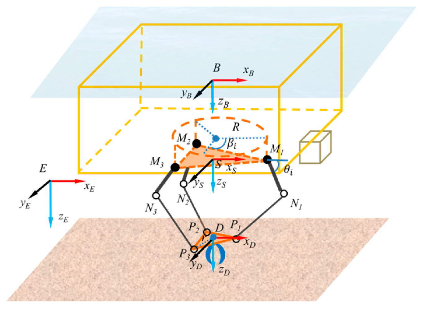 19] developed a dynamic model for an underwater Delta parallel robot, analyzing the influence of hydrodynamic, kinematic, and structural parameters on the robot’s motion trajectory and mechanical properties.