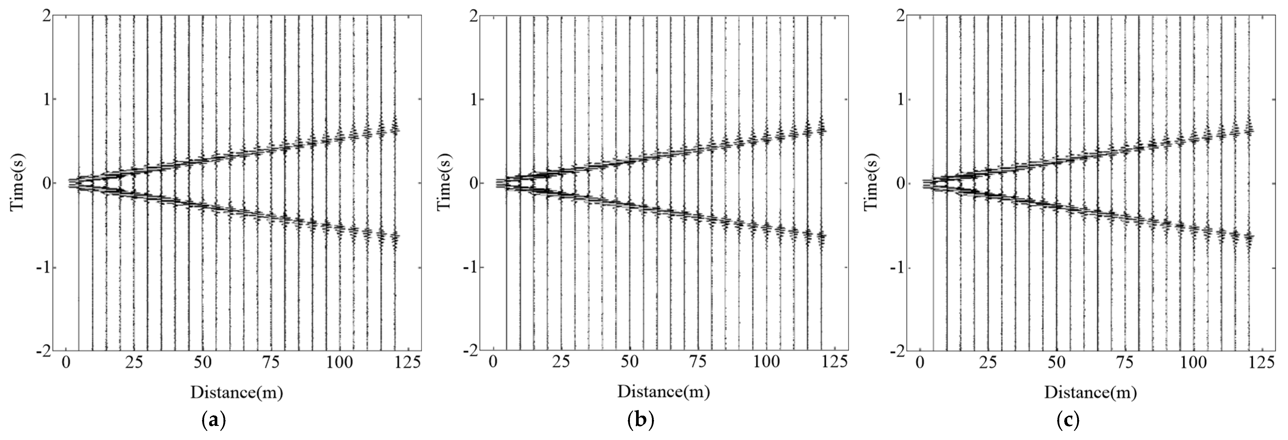 Figure 6, where clear and continuous in-phase axes can be observed. The frequency range used for analysis was 1–10 Hz, and by fitting the results with the Bessel function, the dispersion energy map (