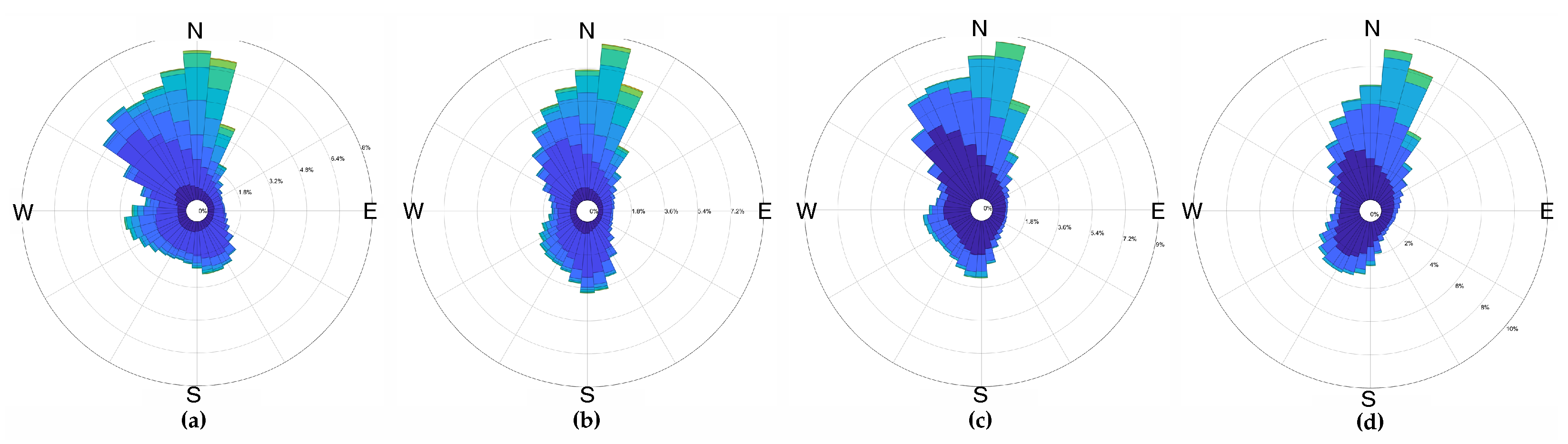 - Shestakova, A.A.; Fedotova, E.V.; Lyulyukin, V.S. Relevance of Era5 reanalysis for wind energy applications: Comparison with sodar observations. Geogr. Environ. Sustain. 2024, 17, 54–66. [Google Scholar] [CrossRef]