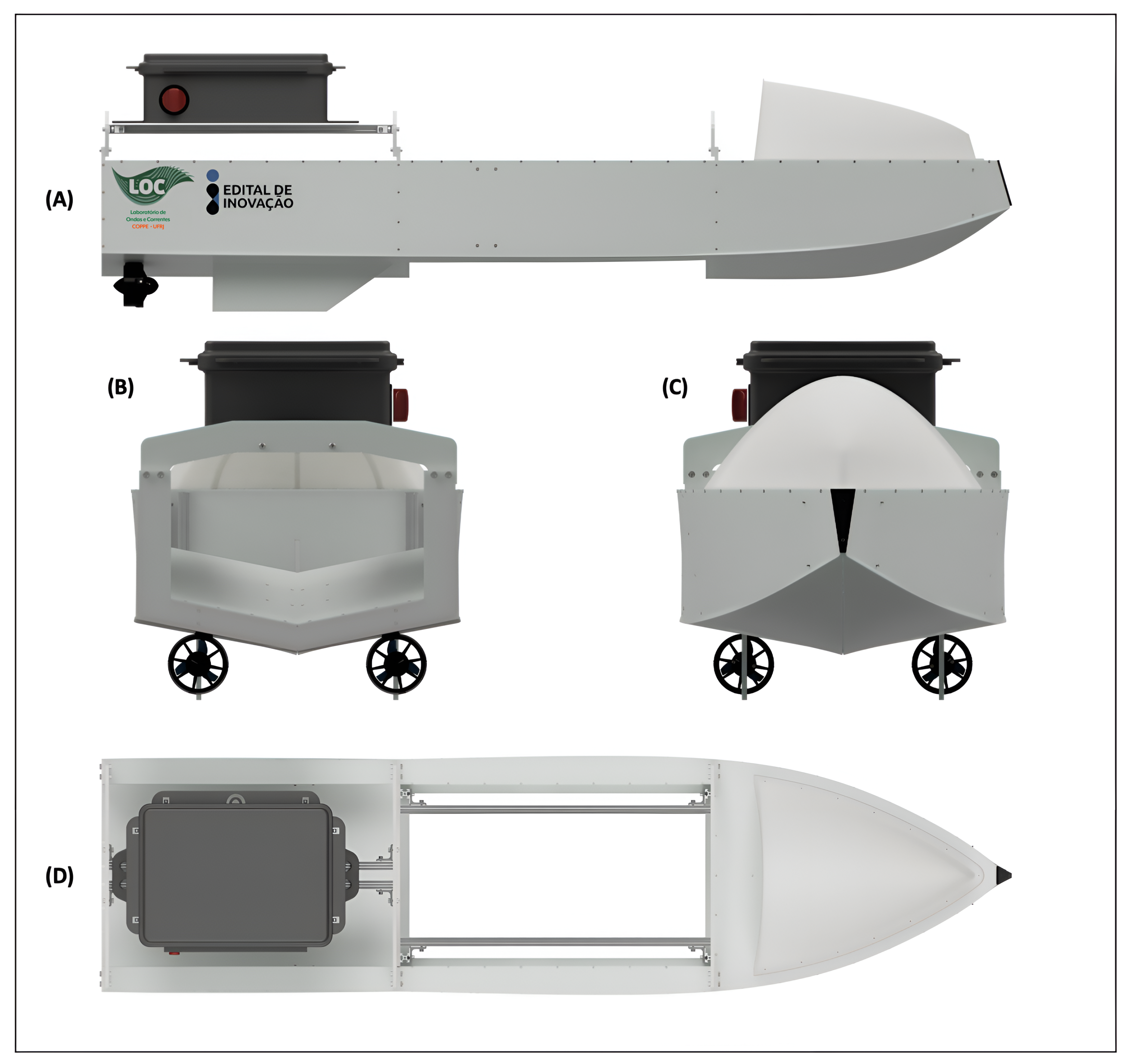 The hull concept is based on V-shaped hulls that use flat plates, facilitating construction. Due to the multi-purpose requirement, 4 operational profiles were defined to cover the most comprehensive applications, considering the current scenario of unmanned surface vehicles. By adopting a modular concept, each profile has a hull configuration that fits a respective profile application, as presented in