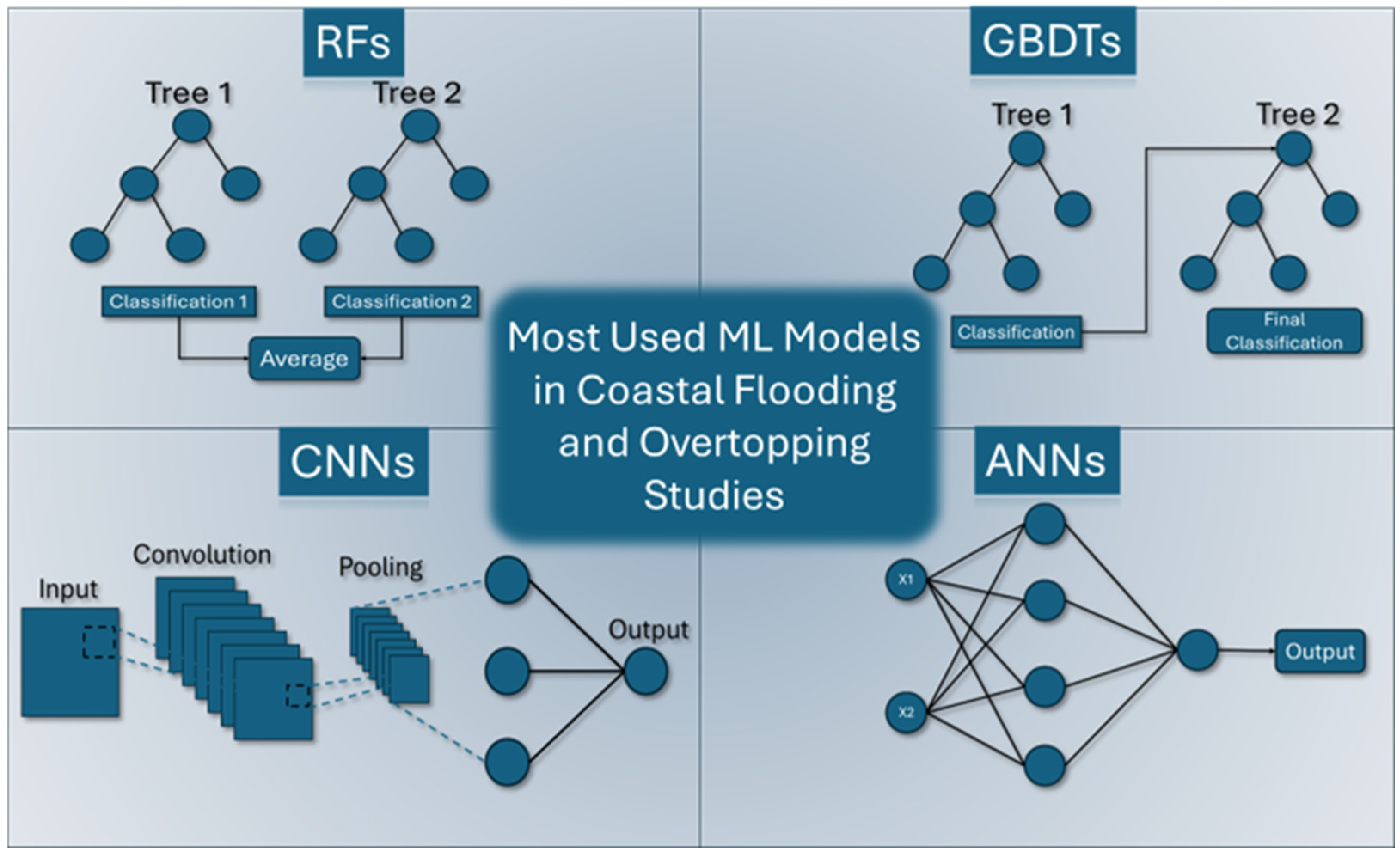 - Inclusion criteria: studies focused on coastal overtopping prediction; coastal flood susceptibility; flood-extent mapping from coastal storm events; studies using ML models applicable to coastal hydrodynamics or remote sensing.