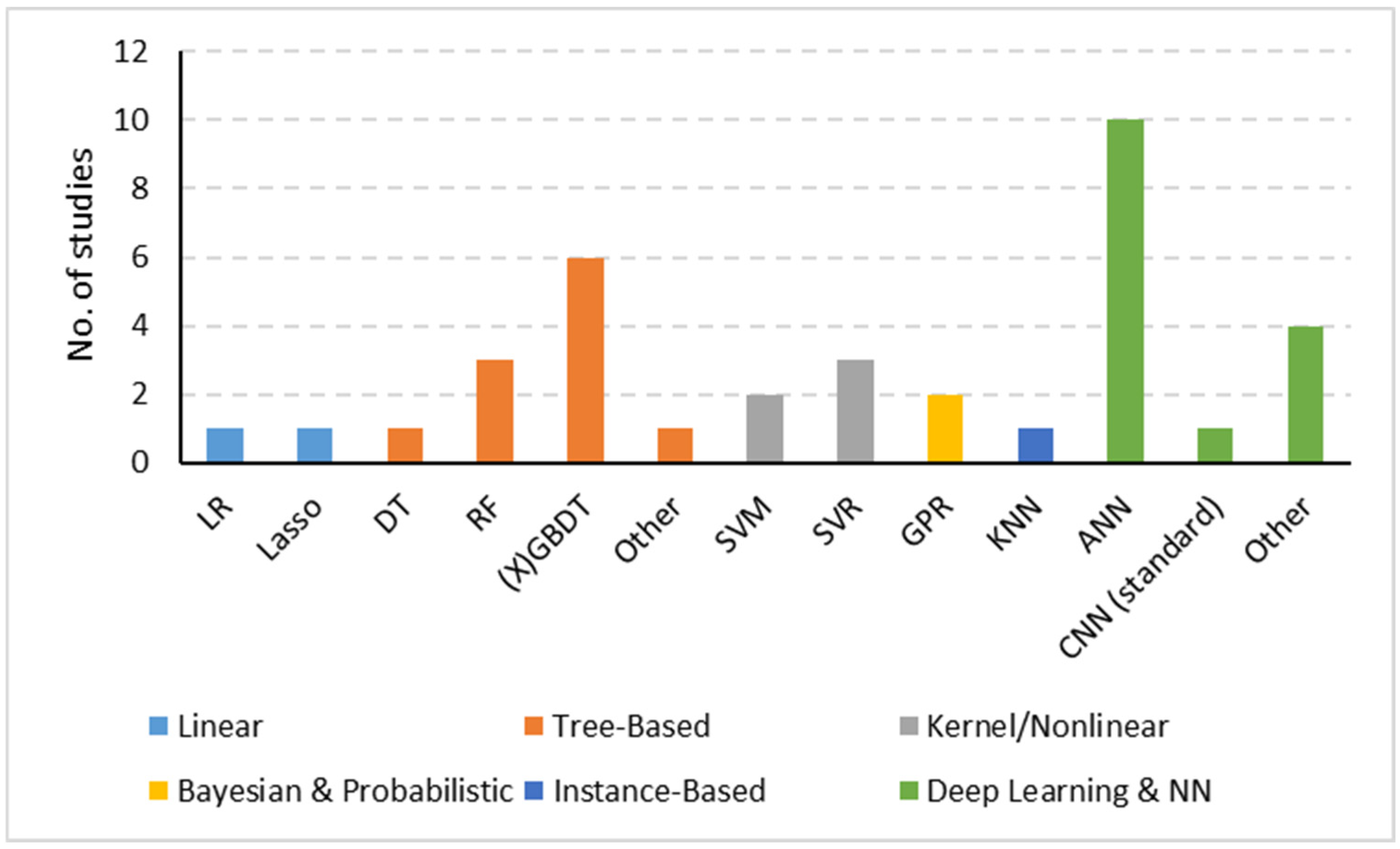 | Kim and Lee [57] | XGB, GPR, SVR, AdaBoost, RF, ANN, Lasso, and linear regressor [Mixed structure] | 8679 (80% train and 20% test) 17 features 1 output (MOD) | WFR; FSL; Log(q); DN into a [0, 1] range | RMSE = 0.691–0.276 |